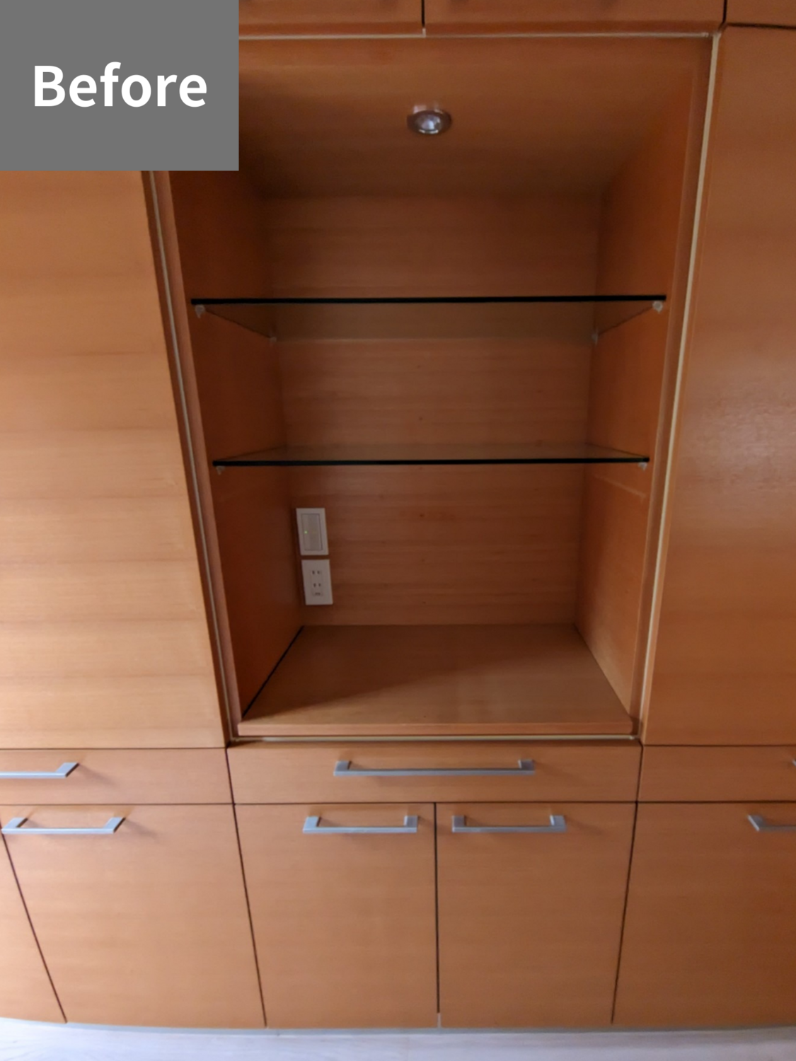 - リフォーム内容:内装工事(ガラス棚取り替え、アクリル板設置、棚取り付け、クロス交換、給湯器設置、収納棚設置、門柱設置、空調交換等)