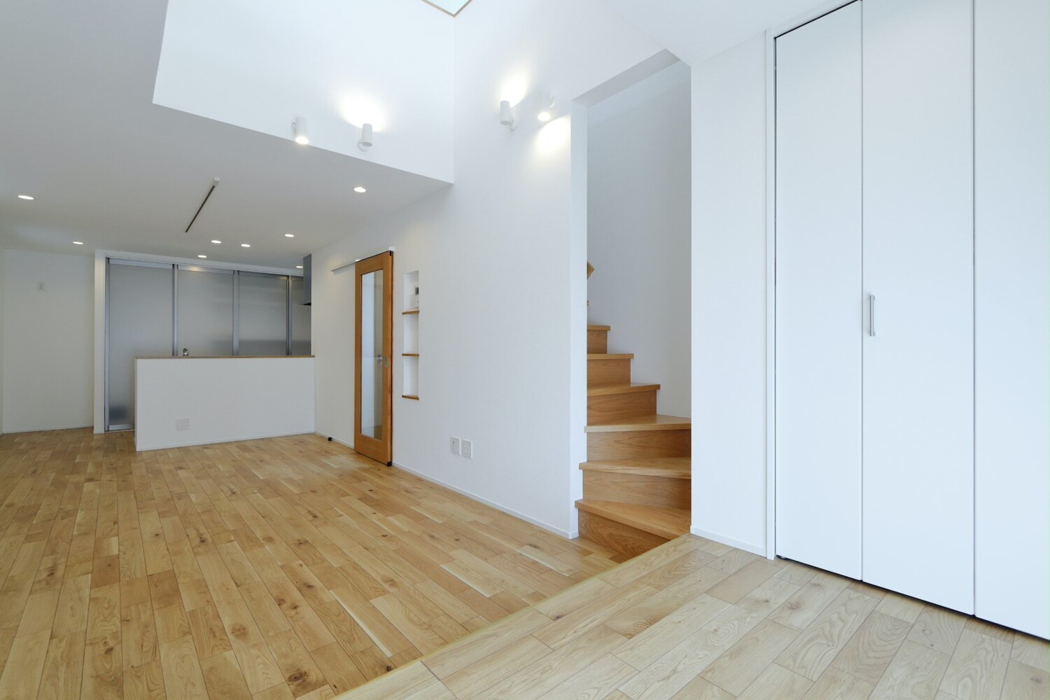ホーム 施工事例 タイプ別 3階建て ひだまりハウス 3階建て×吹き抜けリビングの家 ひだまりハウス 3階建て×吹き抜けリビングの家 杉並区の家 O様邸 タイプ別|3階建て シンプルモダンな印象の、3階建てのお家が完成しました。 外壁:アイカ ジョリパット T-5404画像のみを表示全 18 枚中 1 枚目を表示Next ≫ 玄関脇にはSIC。 巾木ではなく、モルタル立ち上げにすることで空間の区別をはっきりさせています。画像のみを表示全 18 枚中 2 枚目を表示≪ Prev|Next ≫ アクセントクロスはリリカラのLBX-9494。フロアタイルはサンゲツのIS-872(クオーツサイト)を採用しています。画像のみを表示全 18 枚中 3 枚目を表示≪ Prev|Next ≫ 造作洗面台。洗面ボウルは、アイカ工業のスタイリッシュカウンターを採用しております。 木と白の組み合わせが、清潔感を感じさせてくれます。画像のみを表示全 18 枚中 4 枚目を表示≪ Prev|Next ≫ 浴室はホワイトを基調にし、ダウンライトを3灯設けることでとても明るい空間に仕上がりました。画像のみを表示全 18 枚中 5 枚目を表示≪ Prev|Next ≫ 大きな窓から光をたくさん取り入れる洋室。 床材はイクタの銘木フロアーラスティック(ナラ樫)を採用しており、節が良い味を出しています。画像のみを表示全 18 枚中 6 枚目を表示≪ Prev|Next ≫ 階段は、側板をなくすことでスタイリッシュな仕上がりになっています。 手摺はWOODONEのボードレールです。画像のみを表示全 18 枚中 7 枚目を表示≪ Prev|Next ≫ 大開口の窓が魅力的なLDK。 小上がりを設け、空間の区切りをつけています。画像のみを表示全 18 枚中 8 枚目を表示≪ Prev|Next ≫ リンナイのフロントオープンタイプの食器洗い乾燥機。 食器の出し入れがしやすい仕様になっています。画像のみを表示全 18 枚中 9 枚目を表示≪ Prev|Next ≫ キッチン背面には、大きなパントリーを設けました。 普段は扉を開けて物の出し入れをしやすく、来客時には扉を閉めて生活感を隠すこともできます。画像のみを表示全 18 枚中 10 枚目を表示≪ Prev|Next ≫ 小上がりからの景色。 キッチンまで一直線につながっており、LDK全体の様子を把握することができます。画像のみを表示全 18 枚中 11 枚目を表示≪ Prev|Next ≫ 3階に視線が抜ける吹抜け。 空間の一体感を生み出し、家の中での繋がりを感じさせてくれます。画像のみを表示全 18 枚中 12 枚目を表示≪ Prev|Next ≫ LDKは、WOODONEの建具を採用しております。 建具からも光を取り込むことで、開放感が増します。画像のみを表示全 18 枚中 13 枚目を表示≪ Prev|Next ≫ 将来部屋を2つに仕切れるように、出入り口のドアや収納をそれぞれ2つずつ設けています。画像のみを表示全 18 枚中 14 枚目を表示≪ Prev|Next ≫ 3階には窓をたくさん設け、日差しの差し込む温かい空間ができあがりました。画像のみを表示全 18 枚中 15 枚目を表示≪ Prev|Next ≫ PCカウンターを設け、在宅ワークも捗ります。 窓から外の景色を眺めて、リフレッシュもできそうですね。画像のみを表示全 18 枚中 16 枚目を表示≪ Prev|Next ≫ LIXILの狭小手洗器を設置。 横幅360㎜×奥行180㎜ととてもコンパクトな商品です。画像のみを表示全 18 枚中 17 枚目を表示≪ Prev|Next ≫ こちらの建具はWOODONEのスライディングドア。 開閉スペースを抑え、通路を広く確保できる引戸スタイルに近いドアです。 普通のドアに比べて、ドアの飛び出しが約1/2になっており、狭いスペースや幅が狭い廊下などにおすすめです。画像のみを表示全 18 枚中 18 枚目を表示≪ Prev 工 法:木造軸組構法 延床面積:100.97㎡(30.54坪) 本体価格:2,059万円 別途費用: 396万円 設計費用: 95万円 外構費用: 95万円 合 計:2,550万円 ※表示は全て税込です。 こちらのお住まいが完成するまでの建築レポートはこちら ▽▼もっと事例が見たい方におすすめ▽▼ ホームページには公開されていない写真や間取りを多数掲載!実例集や家づくりについての小冊子、ニュースレターなどがセットになった人気のカタログセット無料プレゼント実施中♪ ▼▼無理な勧誘は行っておりません。お気軽にご参加ください▼▼ ▼▼大好評!オンライン相談も受付中▼▼ 一覧へ戻る 全ての写真 タイプ別 広さ別(延床面積) パーツ別 テイスト別 SUUMO掲載中 すべて SE構法 狭小地・変形地に建てた家 2階建て 3階建て 東京ゼロエミ住宅 二世帯・共同住宅 リフォーム・リノベーション 20坪未満 20坪以上25坪未満 25坪以上30坪未満 30坪以上 すべて キッチン リビング 室内ドア・建具 洗面・トイレ 玄関まわり 階段 フローリング 外観 和室・畳コーナー シンプルモダン シンプルナチュラル スタイリッシュモダン インダストリアル 和風モダン すべて