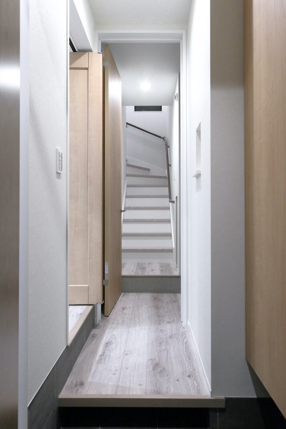 ホーム 施工事例 タイプ別 3階建て 三角形の敷地に建つ3階建て二世帯住宅 三角形の敷地に建つ3階建て二世帯住宅 大田区の家 M様邸 タイプ別|3階建て 三角形の角地に建つM様邸。玄関ドアを2か所設けた完全分離型の二世帯住宅です。画像のみを表示全 18 枚中 1 枚目を表示Next ≫ 子世帯から親世帯へは写真左手のドアから行き来可能。画像のみを表示全 18 枚中 2 枚目を表示≪ Prev|Next ≫ コンパクトにまとめた親世帯12.5帖のLDK。画像のみを表示全 18 枚中 3 枚目を表示≪ Prev|Next ≫ キッチンカウンターの奥は神棚や電話など、置くものに合わせた造作収納に。画像のみを表示全 18 枚中 4 枚目を表示≪ Prev|Next ≫ 造作棚の上はお仏壇スペースに。ロールスクリーンの奥は寝室。画像のみを表示全 18 枚中 5 枚目を表示≪ Prev|Next ≫ 洗面台はコンパクトに。壁には埋込のタオル収納棚を設置。コンセントやティッシュ入れ付きで使い勝手良く。画像のみを表示全 18 枚中 6 枚目を表示≪ Prev|Next ≫ 2階は子世帯のLDK。お子様がのびのび過ごせるように広さは約20帖と最大限確保しました。画像のみを表示全 18 枚中 7 枚目を表示≪ Prev|Next ≫ 窓は南をメインに配置。目隠しはブラインドでスタイリッシュに。バルコニーへの段差はベンチを兼ねたステップを設けて出入りをしやすくしました。画像のみを表示全 18 枚中 8 枚目を表示≪ Prev|Next ≫ 構造上、梁が大きく出てしまうため、折下げ天井の間接照明として活用することに。ダウンライトと合わせてすっきり見せた照明計画です。画像のみを表示全 18 枚中 9 枚目を表示≪ Prev|Next ≫ 画像のみを表示全 18 枚中 10 枚目を表示≪ Prev|Next ≫ 画像のみを表示全 18 枚中 11 枚目を表示≪ Prev|Next ≫ 便利なポイントが凝縮されたフルオーダーの洗面台。画像のみを表示全 18 枚中 12 枚目を表示≪ Prev|Next ≫ お施主様お気に入りのタイルは名古屋モザイクのコラベル。画像のみを表示全 18 枚中 13 枚目を表示≪ Prev|Next ≫ 浴室使用中も気兼ねなく洗面台が使えるよう、カーテンで仕切れる仕様。画像のみを表示全 18 枚中 14 枚目を表示≪ Prev|Next ≫ 角も無駄なく収納に。向かいの洗濯機と干渉しないよう、スライド開閉にしているのもポイントです。画像のみを表示全 18 枚中 15 枚目を表示≪ Prev|Next ≫ 3階の寝室は2帖ほどのウォークインクローゼット付きに。画像のみを表示全 18 枚中 16 枚目を表示≪ Prev|Next ≫ 画像のみを表示全 18 枚中 17 枚目を表示≪ Prev|Next ≫ 画像のみを表示全 18 枚中 18 枚目を表示≪ Prev 工 法:木造軸組構法 延床面積:143.39㎡(43.37坪) 本体価格:3,140万円 別途費用:1,547万円 設計費用: 173万円 合計価格:4,860万円 ※外構費別※表示は全て税込です。 こちらのお住まいが完成するまでの建築レポートはこちら ▽▼もっと事例が見たい方におすすめ▽▼ ホームページには公開されていない写真や間取りを多数掲載!実例集や家づくりについての小冊子、ニュースレターなどがセットになった人気のカタログセット無料プレゼント実施中♪ ▼▼無理な勧誘は行っておりません。お気軽にご参加ください▼▼ ▼▼大好評!オンライン相談も受付中▼▼ 一覧へ戻る 全ての写真 タイプ別 広さ別(延床面積) パーツ別 テイスト別 SUUMO掲載中 すべて SE構法 狭小地・変形地に建てた家 2階建て 3階建て 東京ゼロエミ住宅 二世帯・共同住宅 リフォーム・リノベーション 20坪未満 20坪以上25坪未満 25坪以上30坪未満 30坪以上 すべて キッチン リビング 室内ドア・建具 洗面・トイレ 玄関まわり 階段 フローリング 外観 和室・畳コーナー シンプルモダン シンプルナチュラル スタイリッシュモダン インダストリアル 和風モダン すべて