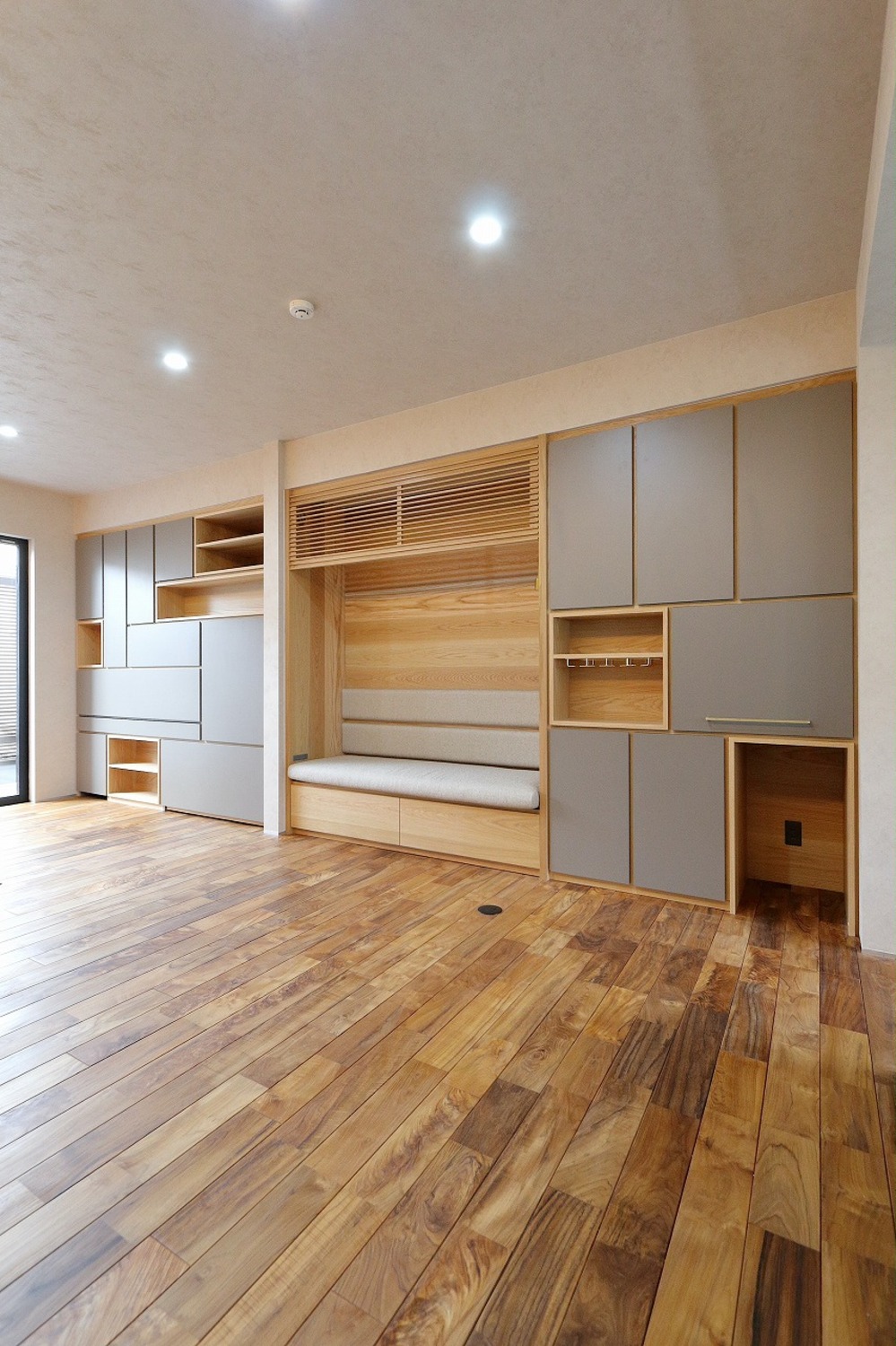 ホーム 施工事例 全ての写真 すべて オーダー家具が目を惹く人が集まる家 オーダー家具が目を惹く人が集まる家 杉並区の家 Y様邸 全ての写真|すべて ビルトインガレージ付き3階建てのお住まい。シンボルツリーとのバランスが美しいこだわりの外観です。画像のみを表示全 23 枚中 1 枚目を表示Next ≫ 大きくせり出た軒天が印象的な外壁のメインカラーはジョリパットT5404。 アクセントとして使用した錆茶のスレート材はアンティーク調の照明との相性も◎。画像のみを表示全 23 枚中 2 枚目を表示≪ Prev|Next ≫ 車の出し入れをしやすくするため表札部分は斜めにデザイン。 写真手前の扉はガレージ収納。玄関横には室内から取り出せる宅配ボックスを取り付けました。画像のみを表示全 23 枚中 3 枚目を表示≪ Prev|Next ≫ シューズインクローゼットの扉はミラーにすることで玄関をより広く見せます。画像のみを表示全 23 枚中 4 枚目を表示≪ Prev|Next ≫ ホール壁にはアクセントとしてグリーンマーブルが美しい大理石調の大判タイル(名古屋モザイク:マルミマキシマム)を埋め込みました。 お施主様ご夫婦の結婚式場の階段を参考にチョイスした思いのこもった場所です。画像のみを表示全 23 枚中 5 枚目を表示≪ Prev|Next ≫ W1200の洗面台はタカラスタンダードのもの。まわりは脈模様が美しい大理石調のタイルでお手入れもしやすく。画像のみを表示全 23 枚中 6 枚目を表示≪ Prev|Next ≫ ランドリールームには漬けおきなどに便利なスロップシンクを設置。画像のみを表示全 23 枚中 7 枚目を表示≪ Prev|Next ≫ 洗濯動線をラクにするため、ランドリールームとファミリークローゼットの間にスペースを開けてランドリーバスケット置場に。画像のみを表示全 23 枚中 8 枚目を表示≪ Prev|Next ≫ ランドリールーム裏のファミリークローゼット。家族が増えても対応できる大容量です。画像のみを表示全 23 枚中 9 枚目を表示≪ Prev|Next ≫ ユニットバスはTOTOのサザナ。通常より少し大きめの1618サイズです。画像のみを表示全 23 枚中 10 枚目を表示≪ Prev|Next ≫ LDKは広さ約23帖。壁一面の収納とヌックは使い勝手を考え抜いたオリジナル品。画像のみを表示全 23 枚中 11 枚目を表示≪ Prev|Next ≫ リビングは間接照明で落ち着いた雰囲気に。 テレビ代わりにロールスクリーンを設置し、映画などをダイナミックに楽しめる仕様にしました。画像のみを表示全 23 枚中 12 枚目を表示≪ Prev|Next ≫ フローリングにはヴィンテージ加工を施したチークの無垢材を使用。 ソファに腰かけた時に実際よりも奥行き感が出るよう短手方向に貼っています。画像のみを表示全 23 枚中 13 枚目を表示≪ Prev|Next ≫ ヌックを中心に、右側にはコーヒーメーカーやワインセラー、電子レンジも収納可能。 左側は電子ピアノやプロジェクター、ルンバ基地となっています。画像のみを表示全 23 枚中 14 枚目を表示≪ Prev|Next ≫ 階段との間仕切りはガラス扉で開放的な印象に。画像のみを表示全 23 枚中 15 枚目を表示≪ Prev|Next ≫ キッチンはタカラスタンダードを採用。通路確保のためレンジフード側を少し壁に埋めています。画像のみを表示全 23 枚中 16 枚目を表示≪ Prev|Next ≫ 奥のパントリー壁はメニューなどを貼っておけるようマグネットパネル仕様にしています。画像のみを表示全 23 枚中 17 枚目を表示≪ Prev|Next ≫ 電子レンジなどは壁面収納に置くためカップボード上はすっきりと。 写真奥は昇降デスクを置いて奥様の作業スペースになる予定。画像のみを表示全 23 枚中 18 枚目を表示≪ Prev|Next ≫ バルコニーは大きめの600角タイルを貼り高級感のある仕上がりに。画像のみを表示全 23 枚中 19 枚目を表示≪ Prev|Next ≫ 約9帖の寝室。お子様の成長に合わせて将来は別々の個室に仕切れる仕様にしています。画像のみを表示全 23 枚中 20 枚目を表示≪ Prev|Next ≫ ポップなアクセントクロスで可愛らしい雰囲気にコーディネート。画像のみを表示全 23 枚中 21 枚目を表示≪ Prev|Next ≫ ハリネズミ柄が可愛らしいクロスはFE76738。 ヘリンボーン状のタイル柄の床はサンゲツのクッションフロア:HM11143。画像のみを表示全 23 枚中 22 枚目を表示≪ Prev|Next ≫ トイレ内の手洗器は日々のお手入れがラクなホーロー製。画像のみを表示全 23 枚中 23 枚目を表示≪ Prev 工 法:木造在来工法 延床面積:122.74㎡(37.12坪) 本体価格:2,460万円 別途費用:1,979万円 設計費用: 251万円 外構費用: 137万円 合 計:4,827万円 ※表示は全て税込です こちらのお住まいが完成するまでの建築レポートはこちら お客様の声はこちら ▽▼もっと事例が見たい方におすすめ▽▼ ホームページには公開されていない写真や間取りを多数掲載!実例集や家づくりについての小冊子、ニュースレターなどがセットになった人気のカタログセット無料プレゼント実施中♪ ▼▼無理な勧誘は行っておりません。お気軽にご参加ください▼▼ ▼▼大好評!オンライン相談も受付中▼▼ 一覧へ戻る 全ての写真 タイプ別 広さ別(延床面積) パーツ別 