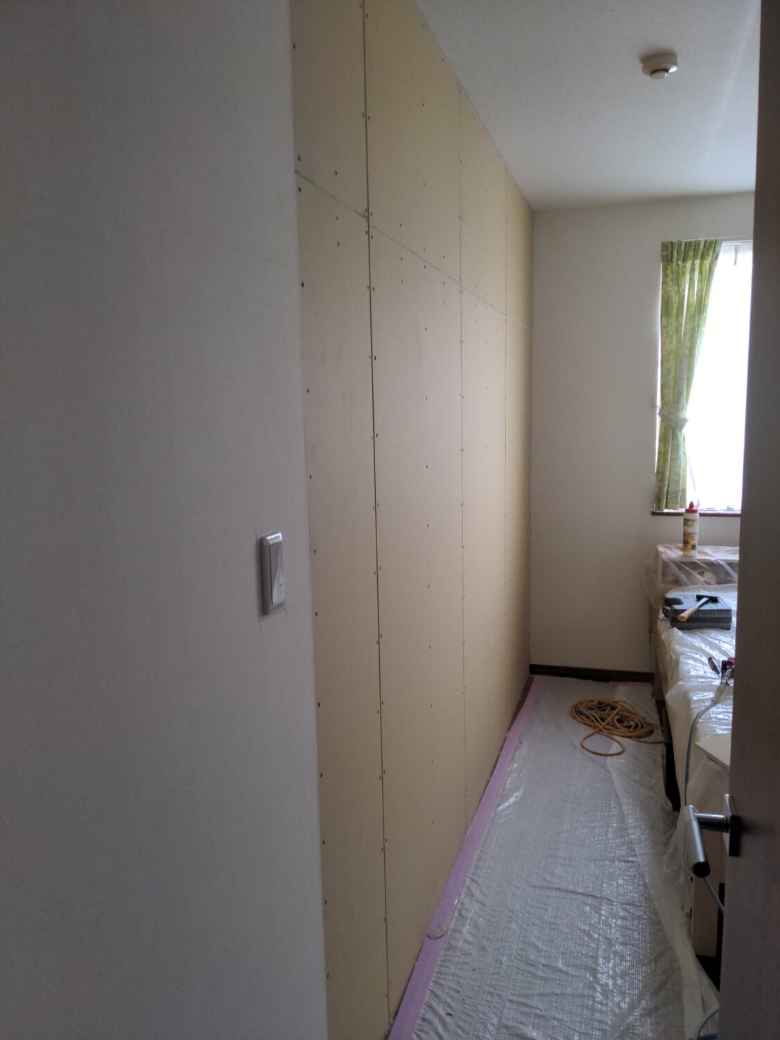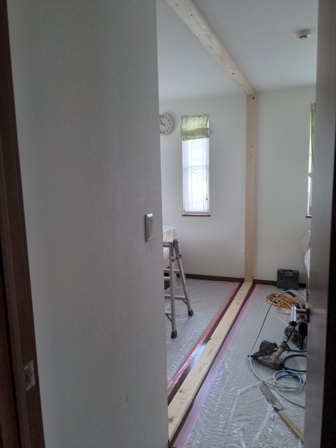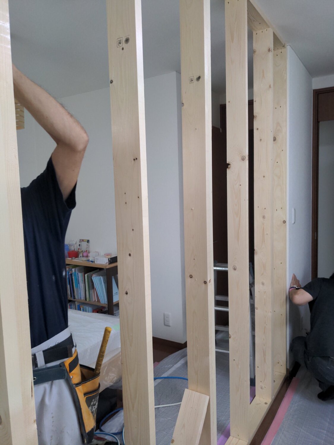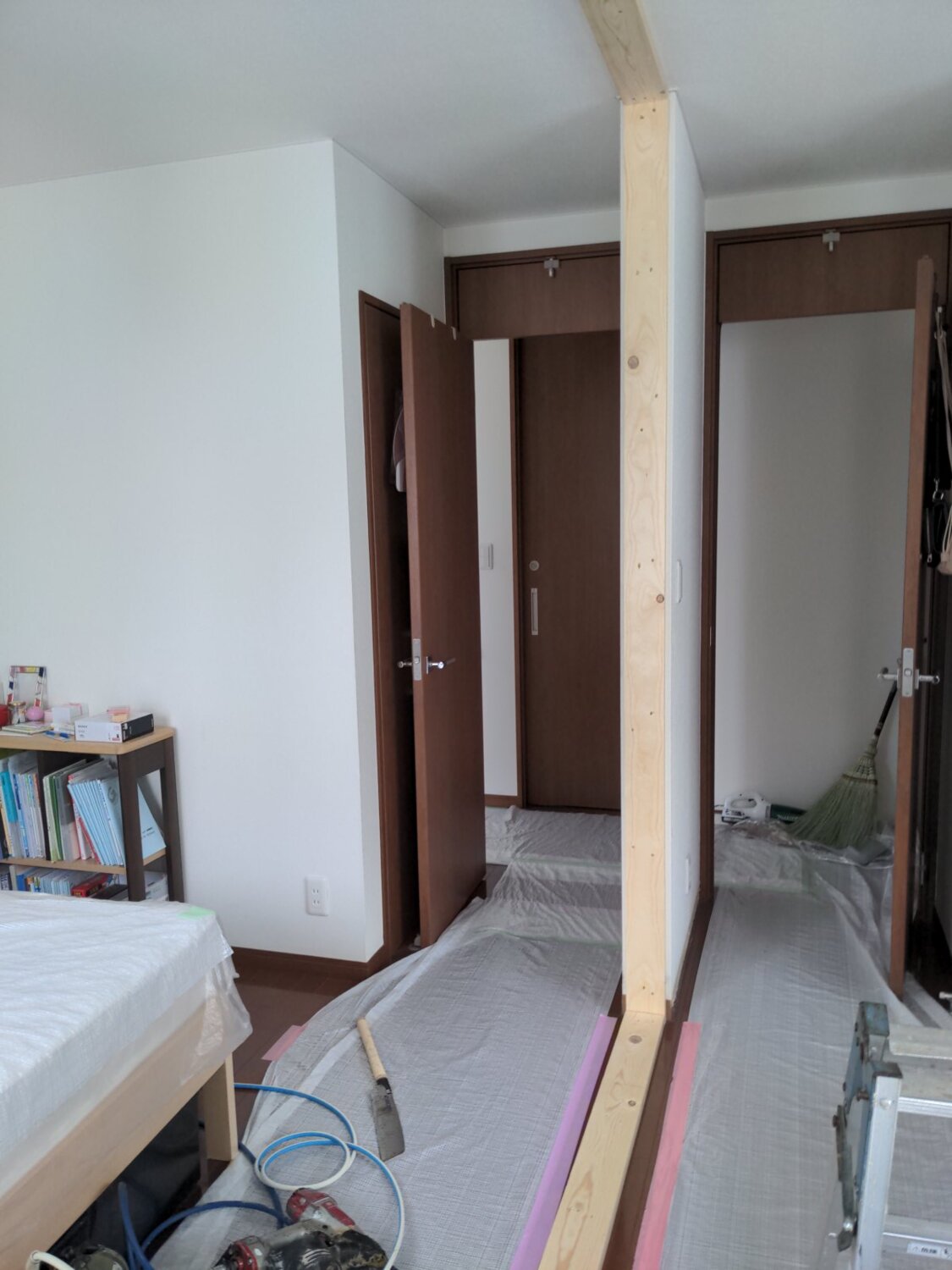 元々ドアを2か所設置し、将来仕切れるようにしていた子ども部屋に間仕切り壁を造作しました。