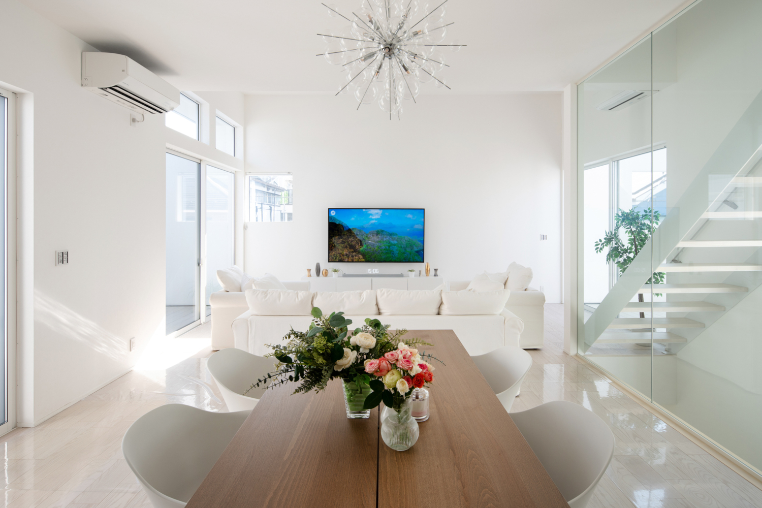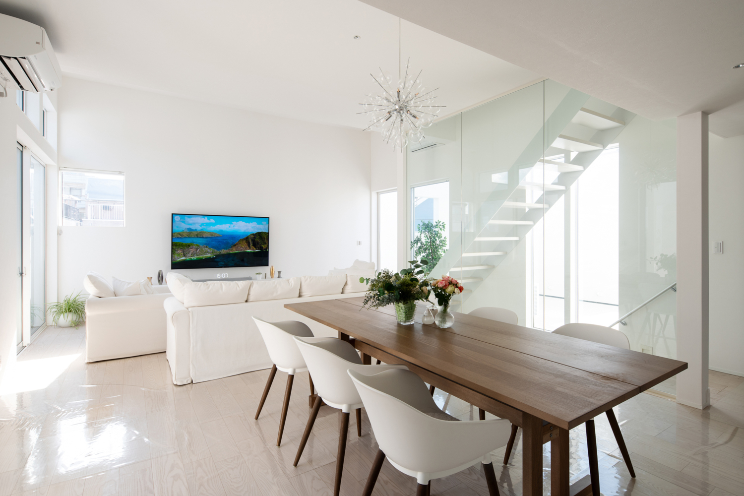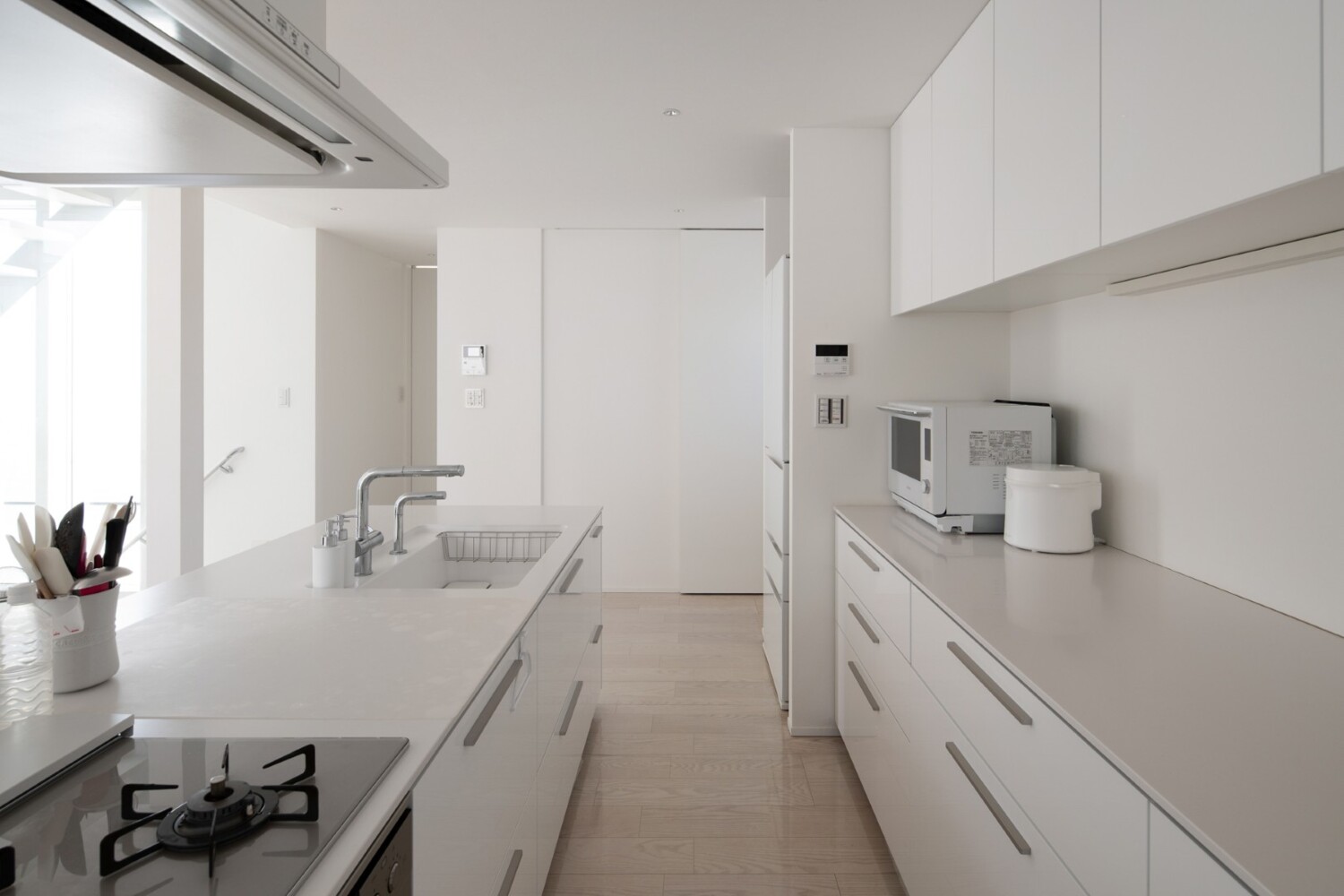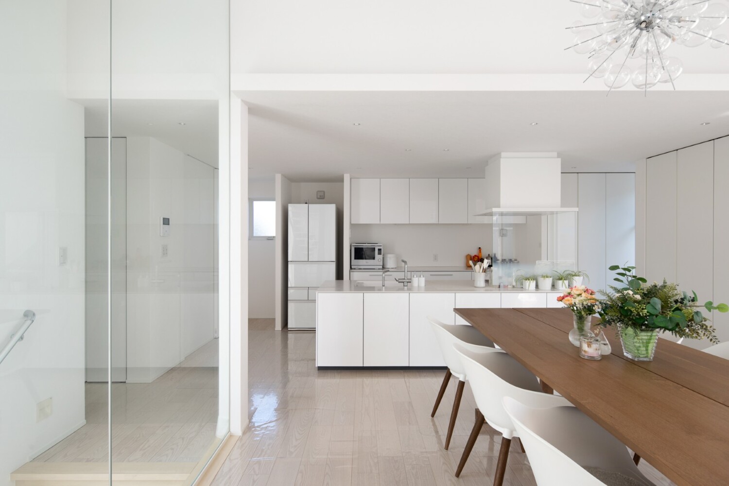 ホーム 施工事例 全ての写真 すべて 白で満たされたビルトインガレージのある家 白で満たされたビルトインガレージのある家 練馬区の家 H様邸 全ての写真|すべて まるで海辺の別荘のような白一色の外観。無駄を削ぎ落としたシルエットで、街並みに凛とした存在感を放ちます。画像のみを表示全 19 枚中 1 枚目を表示Next ≫ 計画当初からのこだわりだったビルトインガレージ。灯りがともる夕暮れどき、その存在がいっそう際立ちます。画像のみを表示全 19 枚中 2 枚目を表示≪ Prev|Next ≫ 毎日がリゾートのように感じられる、白にこだわった住まい。画像のみを表示全 19 枚中 3 枚目を表示≪ Prev|Next ≫ リゾートのような植栽と生活感を抑えた宅配ボックス。実用性とデザイン性をさりげなく両立した玄関まわりです。画像のみを表示全 19 枚中 4 枚目を表示≪ Prev|Next ≫ 足元や壁面の照明で、光がやさしく広がる玄関廊下空間。ダウンライトではなく、あえて控えめな明るさに。階段の袖壁はガラスにして、閉塞感を抑えています。画像のみを表示全 19 枚中 5 枚目を表示≪ Prev|Next ≫ 床・壁・天井まですべて白で統一。開放感と非日常感を両立しました。画像のみを表示全 19 枚中 6 枚目を表示≪ Prev|Next ≫ リビングの両サイドにプライベートテラスを設け、カーテンレスで過ごせる寛ぎ空間。画像のみを表示全 19 枚中 7 枚目を表示≪ Prev|Next ≫ リビング部分は天井高に変化を付けて開放感をプラスしました。画像のみを表示全 19 枚中 8 枚目を表示≪ Prev|Next ≫ 階段横の壁は視線が通るよう強化ガラスで仕上げました。画像のみを表示全 19 枚中 9 枚目を表示≪ Prev|Next ≫ 広さは約35帖。ゆとりのある空間に、白を基調としたインテリアがより開放感を与えます。画像のみを表示全 19 枚中 10 枚目を表示≪ Prev|Next ≫ 夜はシャンデリアと間接照明がやさしく灯ります。明るすぎず、暗すぎず、一日の終わりをゆったり過ごせる照明計画です。画像のみを表示全 19 枚中 11 枚目を表示≪ Prev|Next ≫ 奥は暮らしの変化に合わせて使える収納スペース。何をしまうかを決めつけない余白のある設計。画像のみを表示全 19 枚中 12 枚目を表示≪ Prev|Next ≫ 白の中にひときわ映える、木調のダイニングテーブルもポイント。画像のみを表示全 19 枚中 13 枚目を表示≪ Prev|Next ≫ キッチン・ダイニング・リビングがゆるやかにつながる開放感のあるレイアウト。中央には機能美あふれるアイランドキッチン。画像のみを表示全 19 枚中 14 枚目を表示≪ Prev|Next ≫ キッチンはTOTOのザ・クラッソを採用。写真奥は3帖ほどの広々パントリー。画像のみを表示全 19 枚中 15 枚目を表示≪ Prev|Next ≫ モルタル調×大理石調のグレーが映える洗面脱衣室。ダブルボウルで朝の支度もスムーズに。画像のみを表示全 19 枚中 16 枚目を表示≪ Prev|Next ≫ ユニットバスはTOTOを採用。通常より少し大きめの1620サイズでバスタイムもゆったり過ごせます。画像のみを表示全 19 枚中 17 枚目を表示≪ Prev|Next ≫ まるでホテルのようなLDK階の洗面トイレ。ゲストも使う場所だからこそ、間接照明や素材感にこだわりました。画像のみを表示全 19 枚中 18 枚目を表示≪ Prev|Next ≫ 足元の灯りがやさしくともる夕暮れのプライベートテラス。食事を楽しんだり、静かに過ごしたり。暮らしの中で自由に使える贅沢な空間です。画像のみを表示全 19 枚中 19 枚目を表示≪ Prev 工 法:SE構法 延床面積:162.96㎡(49.29坪) こちらのお住まいが完成するまでの建築レポートはこちら お客様からの声はこちら ▽▼もっと事例が見たい方におすすめ▽▼ ホームページには公開されていない写真や間取りを多数掲載!実例集や家づくりについての小冊子、ニュースレターなどがセットになった人気のカタログセット無料プレゼント実施中♪ ▼▼無理な勧誘は行っておりません。お気軽にご参加ください▼▼ ▼▼大好評!オンライン相談も受付中▼▼ 一覧へ戻る 全ての写真 タイプ別 広さ別(延床面積) パーツ別 テイスト別 SUUMO掲載中 すべて SE構法 狭小地・変形地に建てた家 2階建て 3階建て 東京ゼロエミ住宅 二世帯・共同住宅 リフォーム・リノベーション 20坪未満 20坪以上25坪未満 25坪以上30坪未満 30坪以上 すべて キッチン リビング 室内ドア・建具 洗面・トイレ 玄関まわり 階段 フローリング 外観 和室・畳コーナー シンプルモダン シンプルナチュラル スタイリッシュモダン インダストリアル 和風モダン すべて