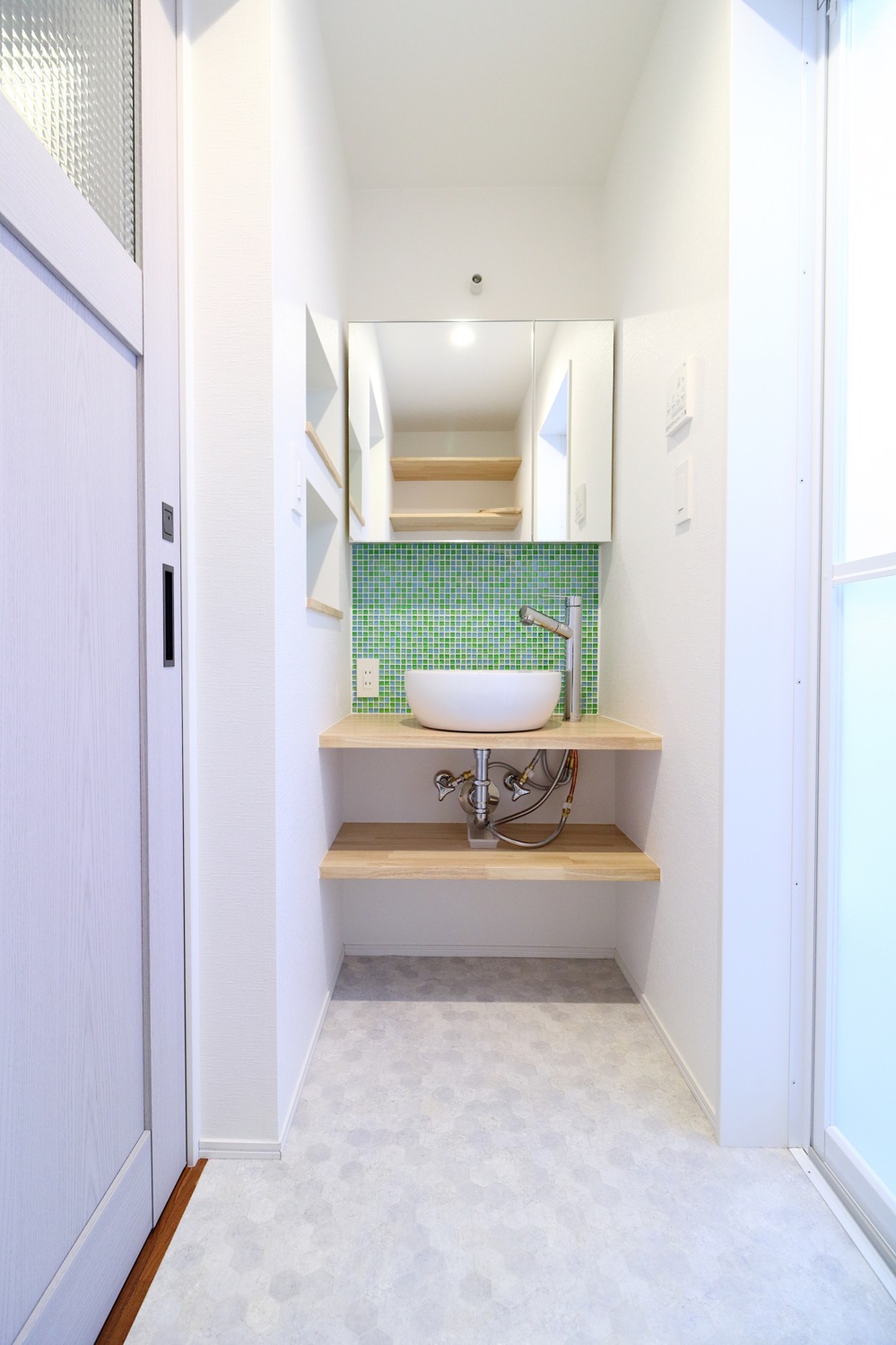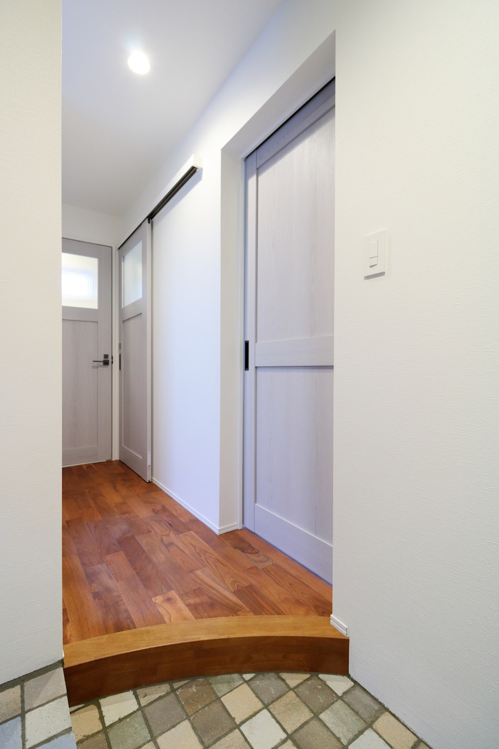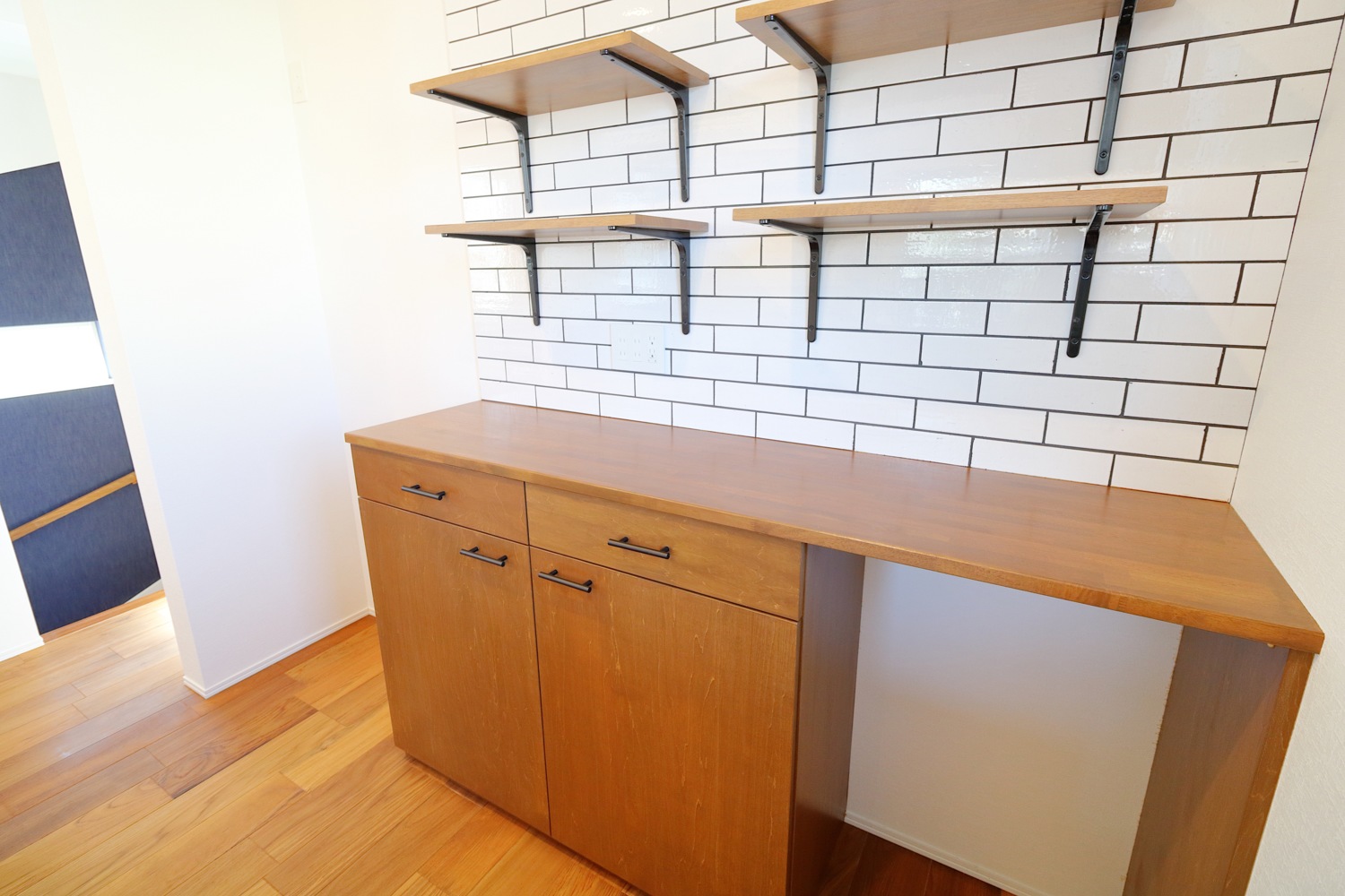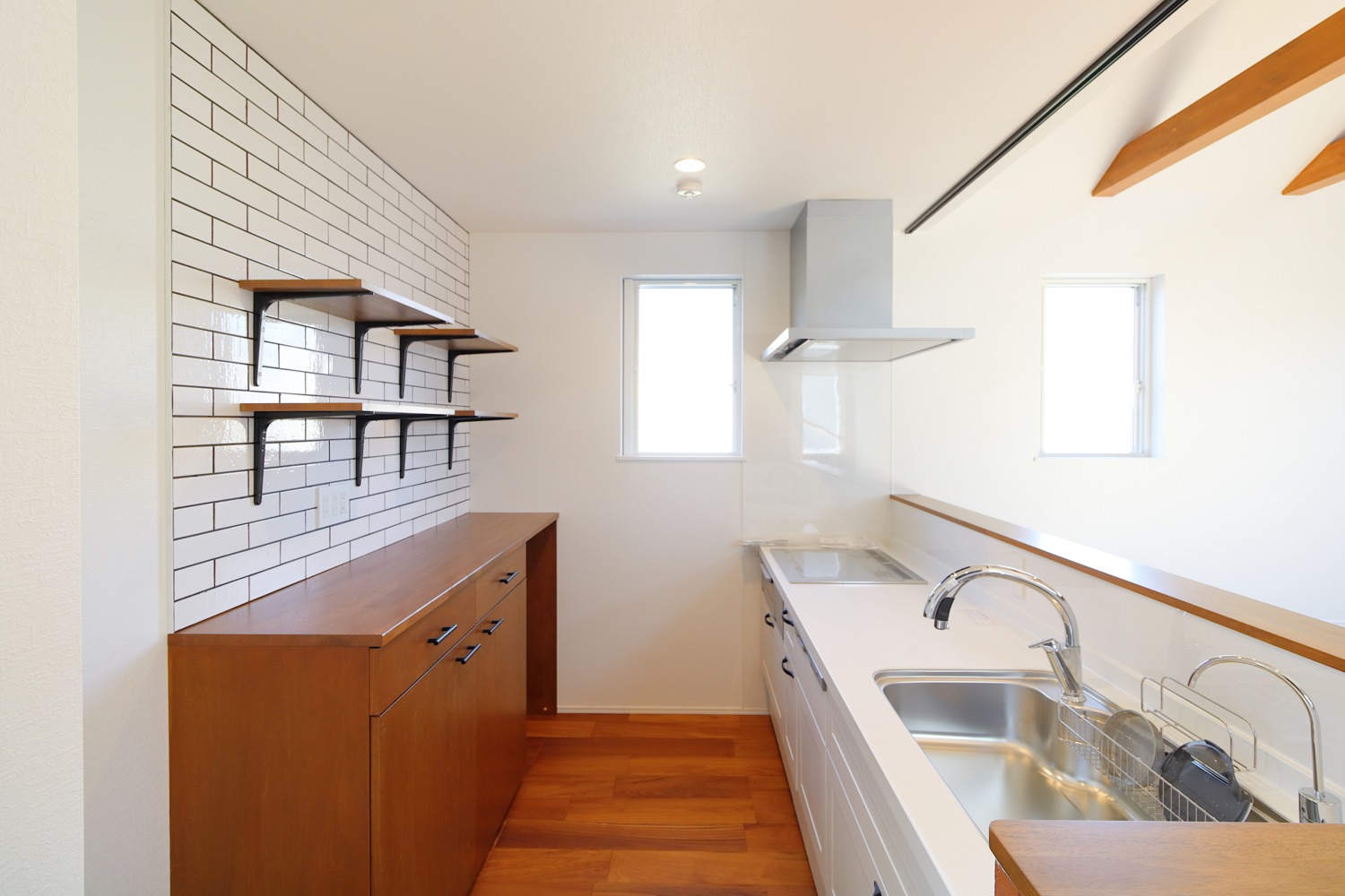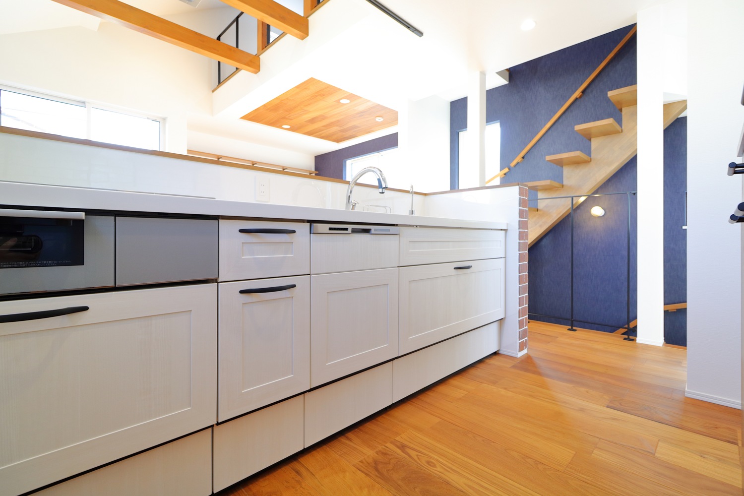 生まれ育った思い入れのあるご実家の建替え工事。ブリックタイルやデニム生地の壁紙など、お施主様こだわりのアイテムを多く取り入れたアメリカンテイストの素敵なお住まいに生まれ変わりました。