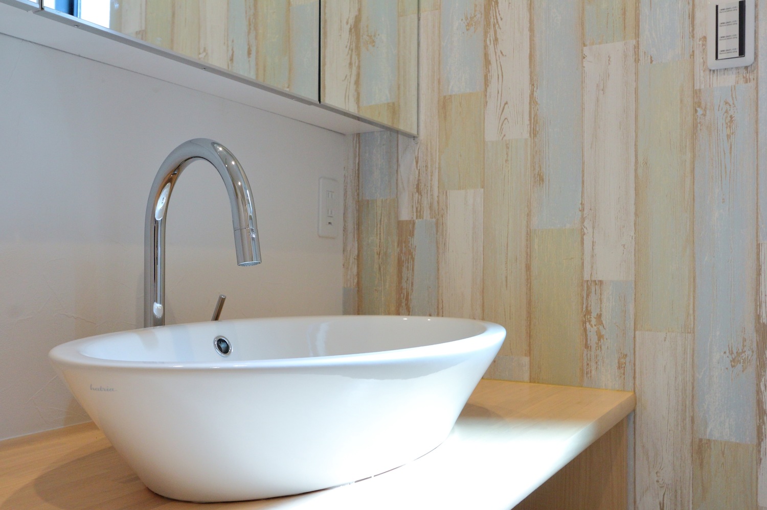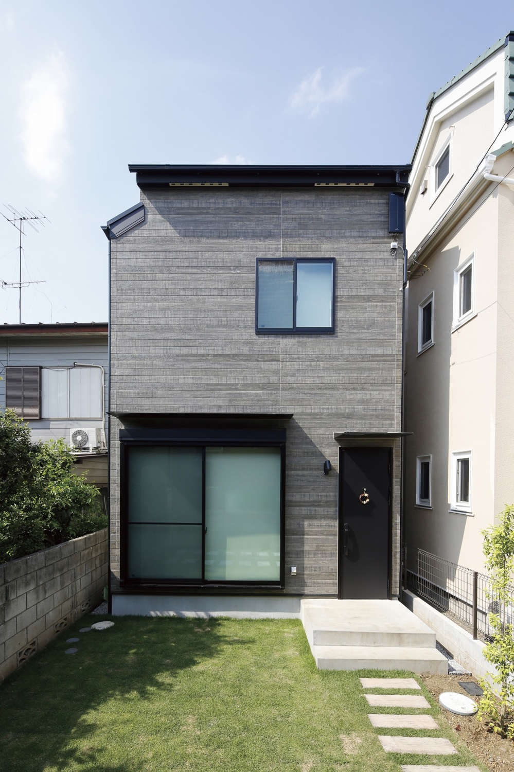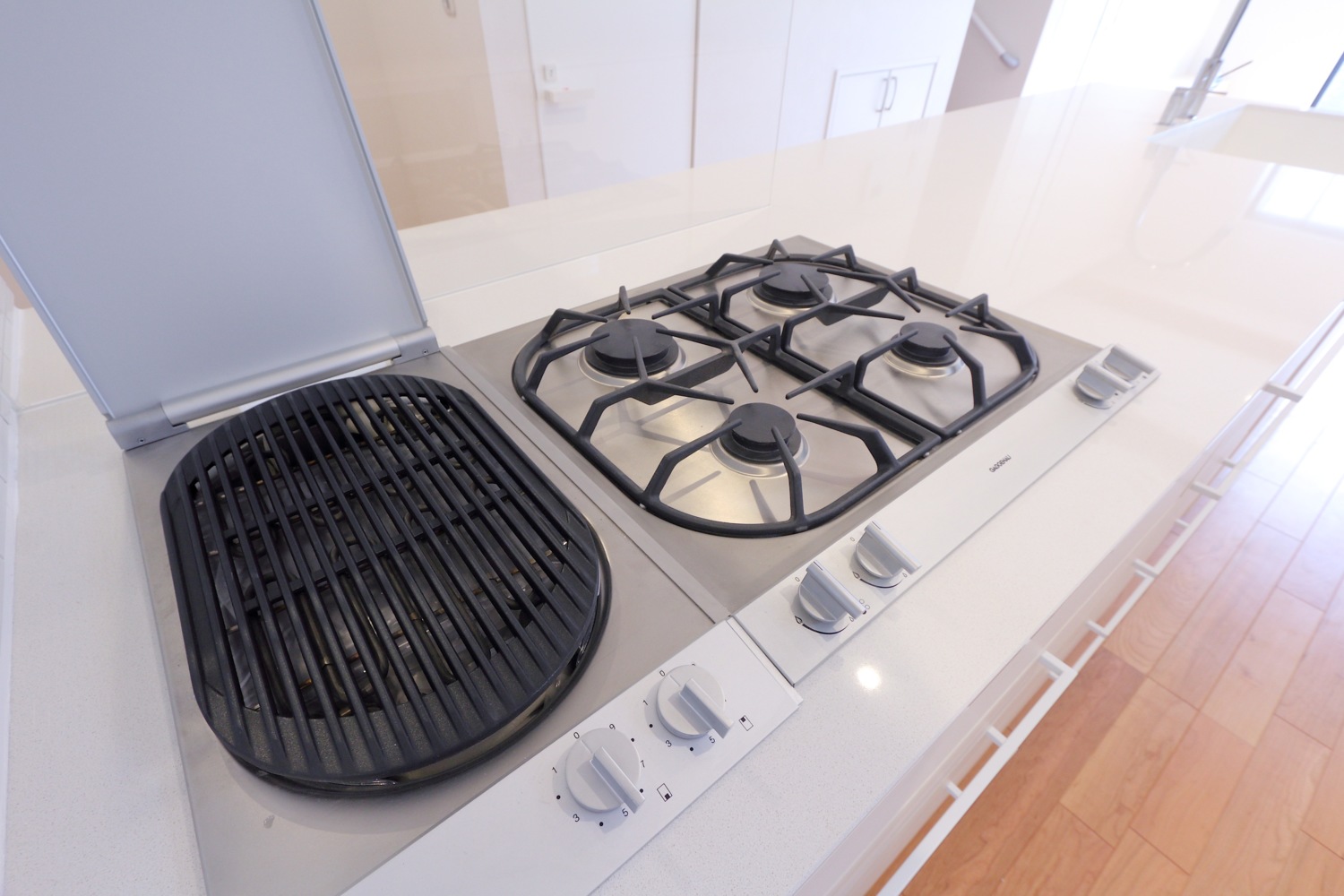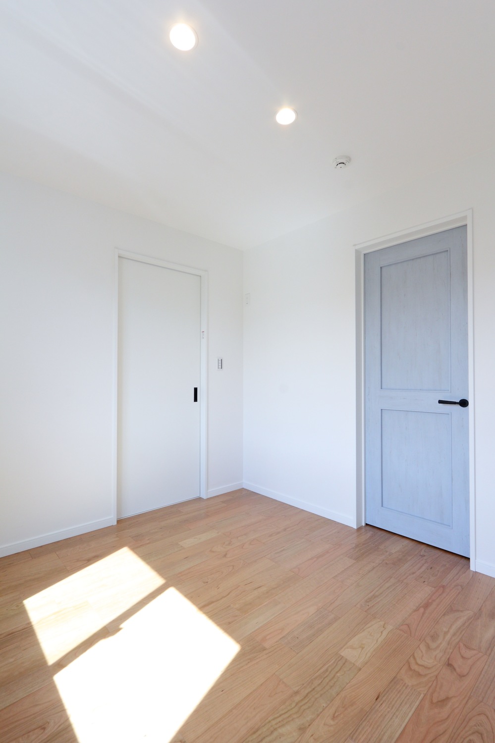 オリジナル家具と白のキッチンが映える高天井リビングの家