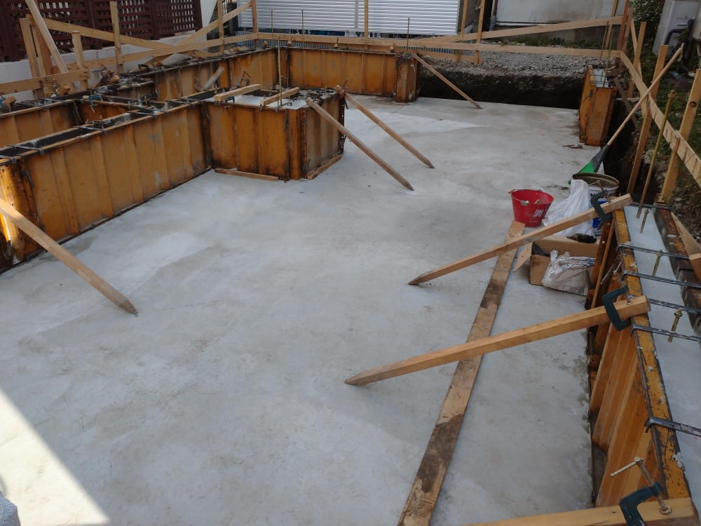 コンクリートを打設し乾いたら、枠組みを外していきます。
