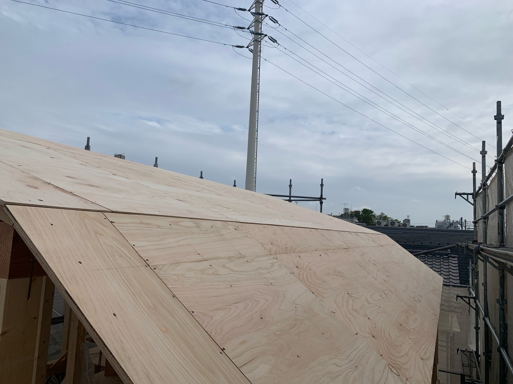 屋根の構造は、下から一般的に野地板→ルーフィング→メイン屋根材の順に仕上がります。