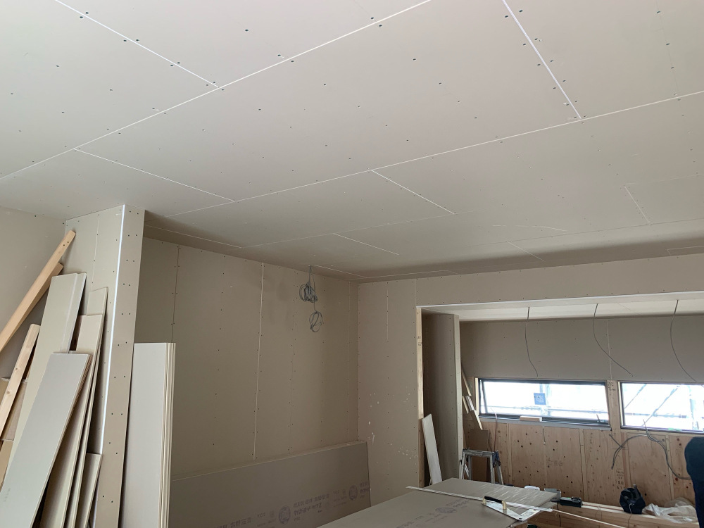 石膏ボードは、建築用内装材料で、防火性、遮音性、寸法安定性、工事の容易性等の特徴があり、経済性にも優れていることから建築物の壁、天井などに広く用いられています。