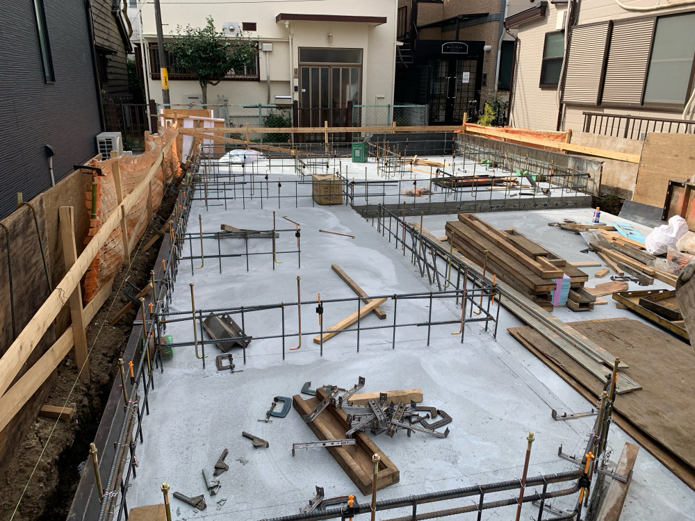 鉄筋を組んでいく際の墨出しや枠材の固定等に必要な工程です。