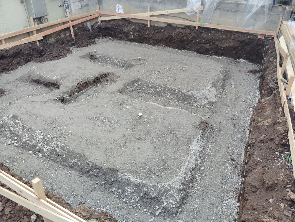 基礎下に砕石を敷く理由は、地盤面の安定化(沈まないこと)です。