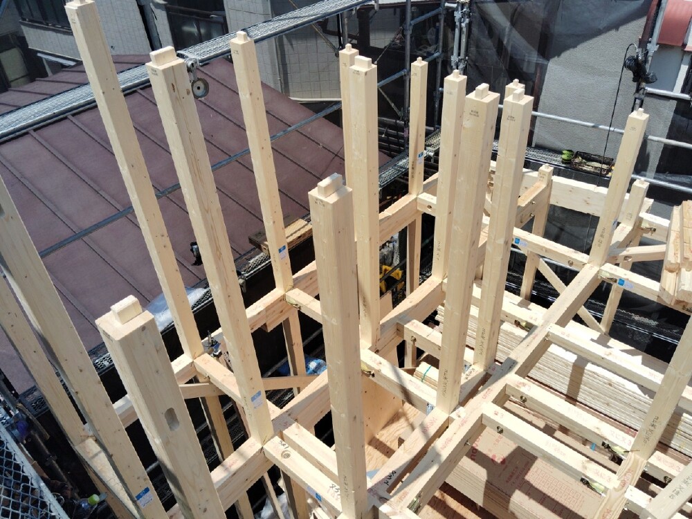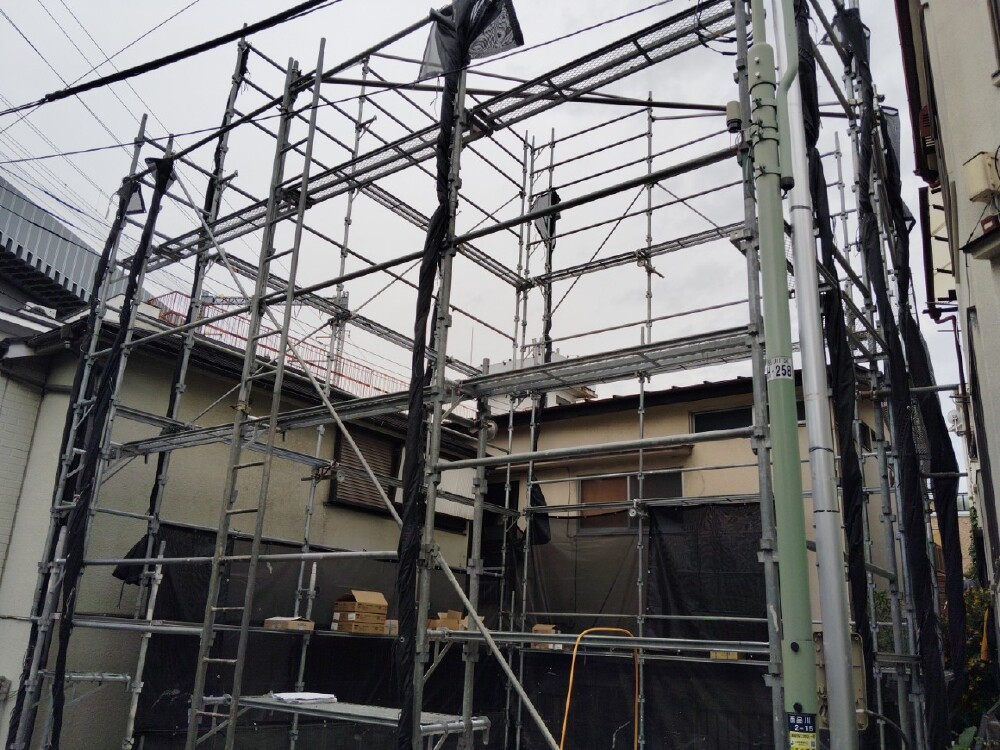 建物を建てる前に足場を先に組むことによって転落のリスクを下げたり、足場があるために上棟作業がしやすくなります。