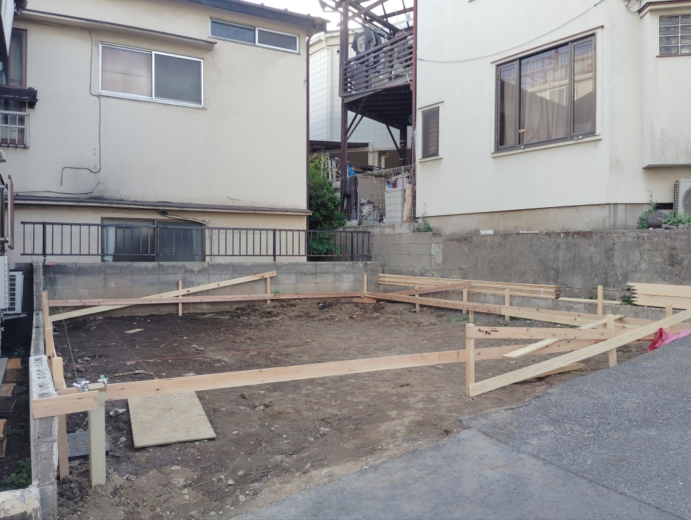 この遣り方とは、基礎工事に重要な情報が示されている囲いの様なものです。