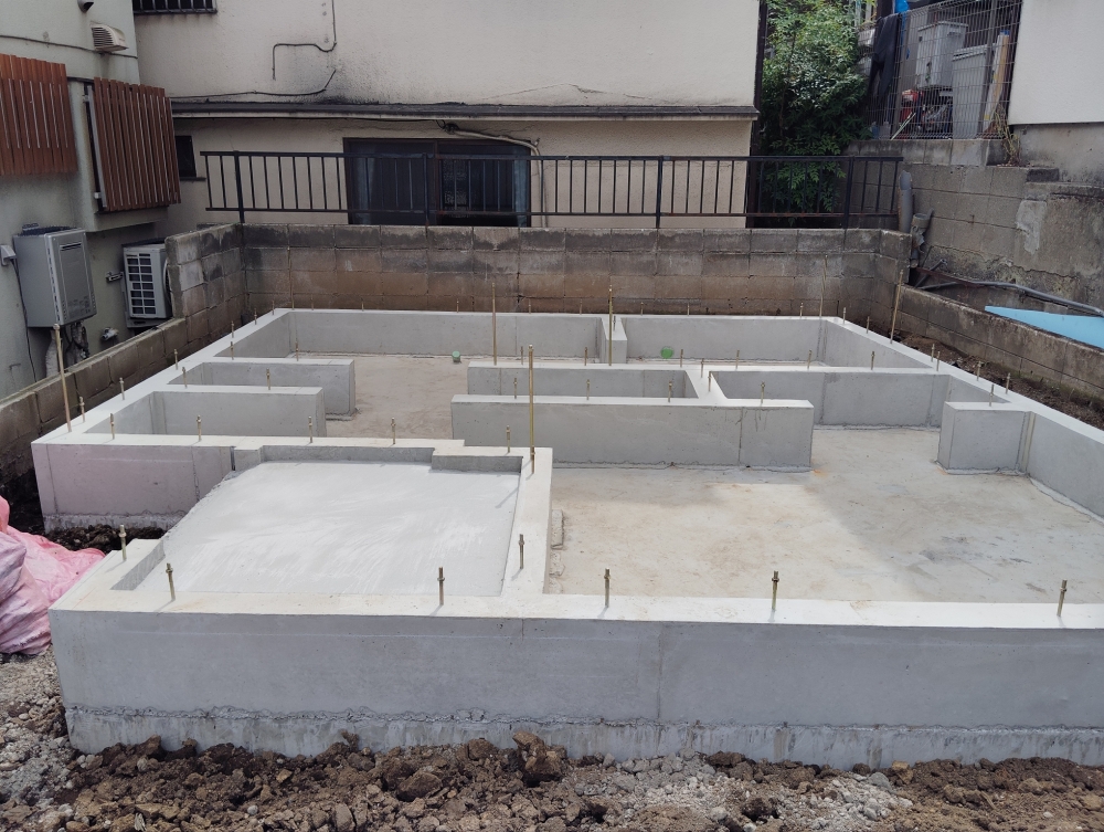 立ち上がりコンクリートの養生期間が終わり、枠バラシをしました。