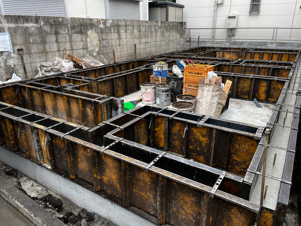 問題なく合格しましたので、耐圧コンクリートを打つ工程に進みます。