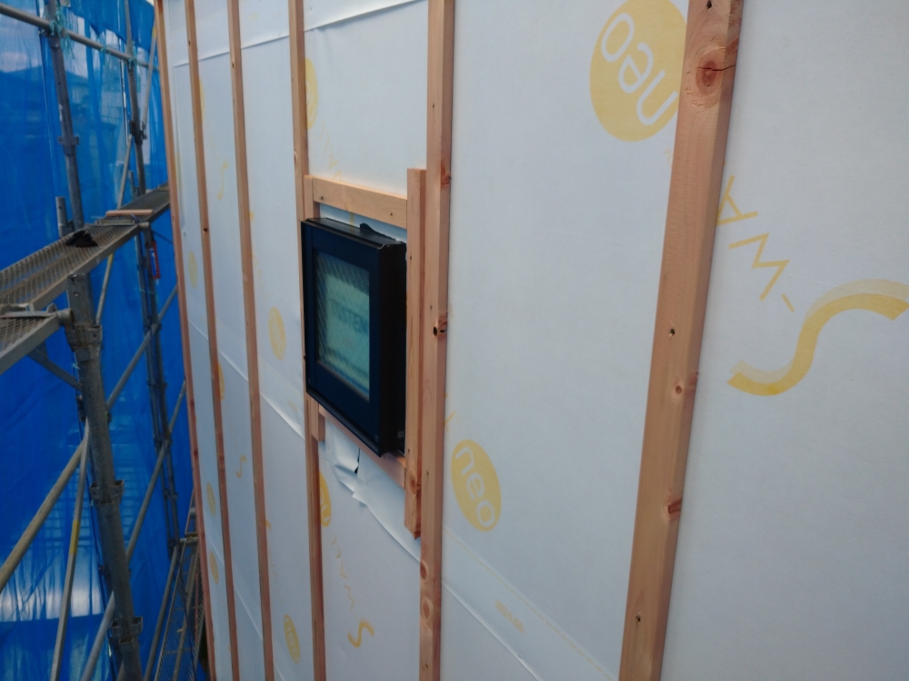 外装下地検査とは、防水シートの重ね代・外壁貫通部の防水処理・サッシまわりの防水テープの施工状況のチェックを受けます。