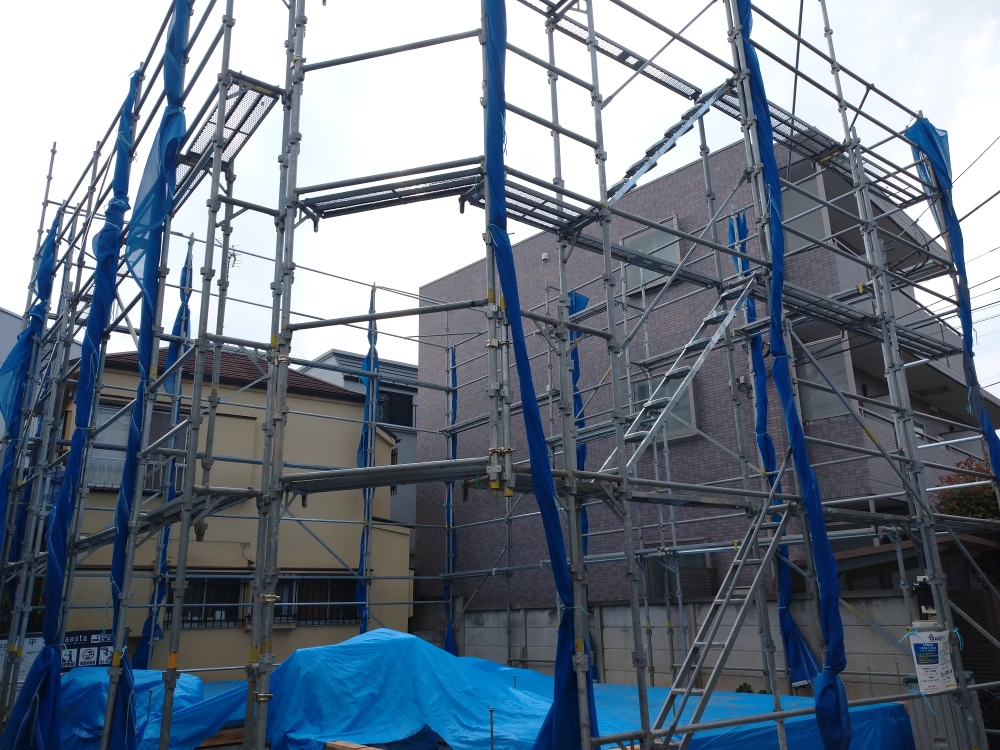 建物を建てる前に足場を先に組むことによって転落のリスクを下げたり、足場があるために上棟作業がしやすくなります。