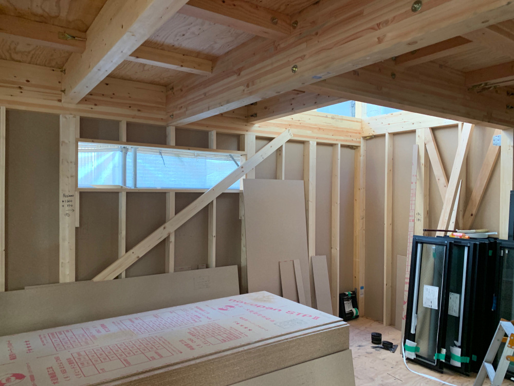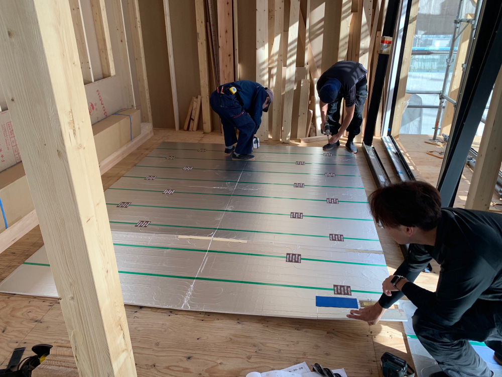 次工程として、大工さんによるフローリングの施工へと進みます。