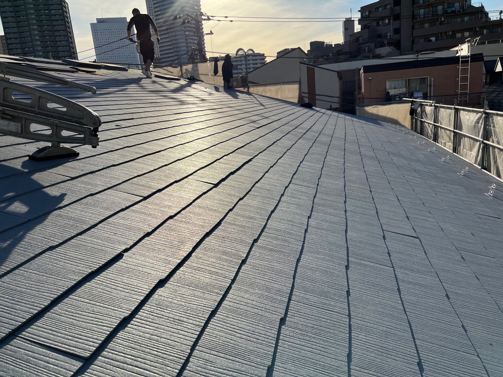 屋根の仕上げ材(スレート)が葺きおわりました。