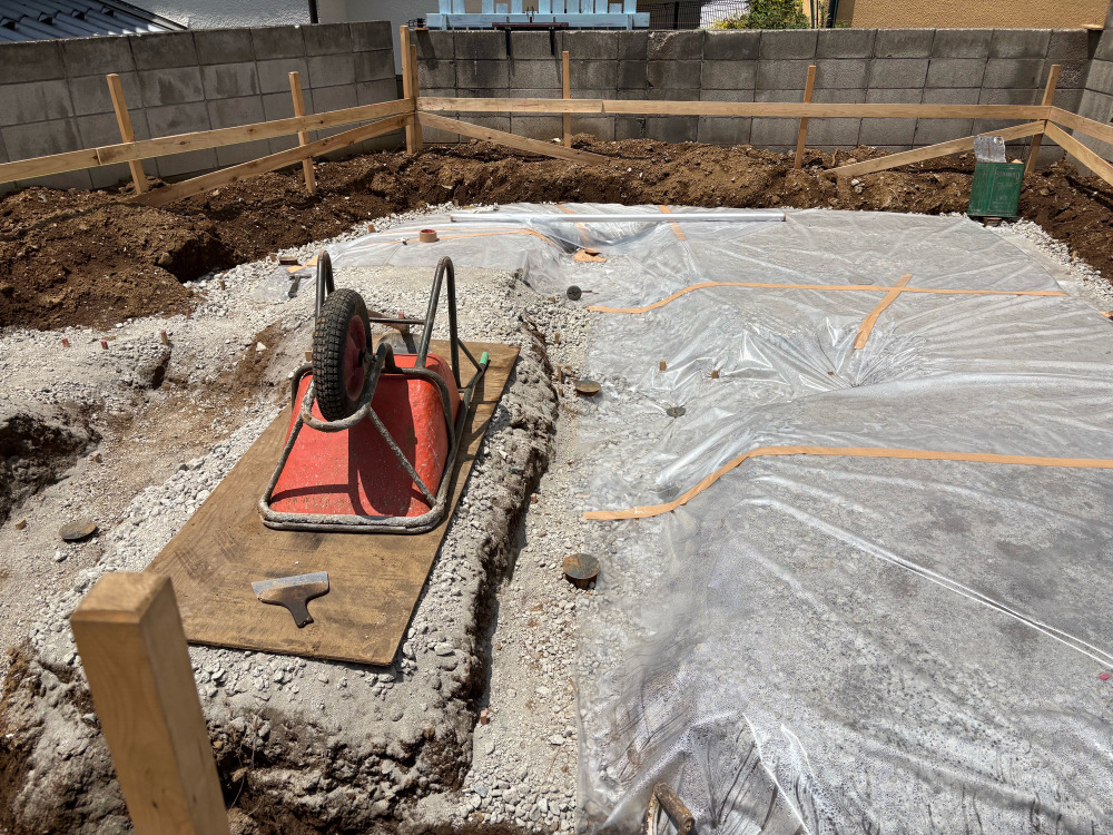 問題なく合格しましたので、耐圧コンクリートを打つ工程に進みます。