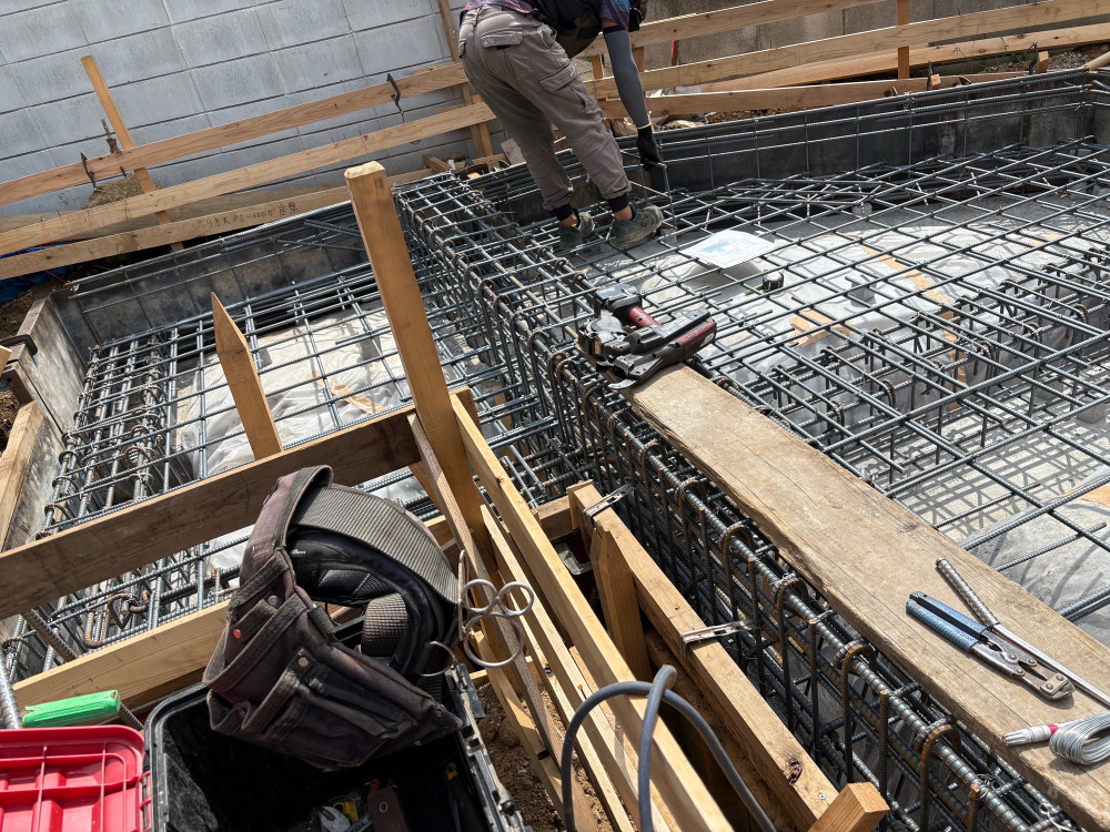 基礎伏図通りに配筋されているか、くまなくチェックをしてもらいます。