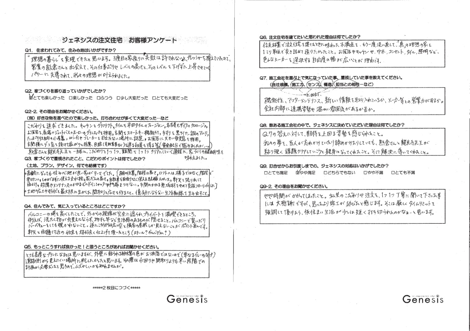 Q. 打合せからお引渡しまでの、ジェネシスの対応はいかがでしたか?