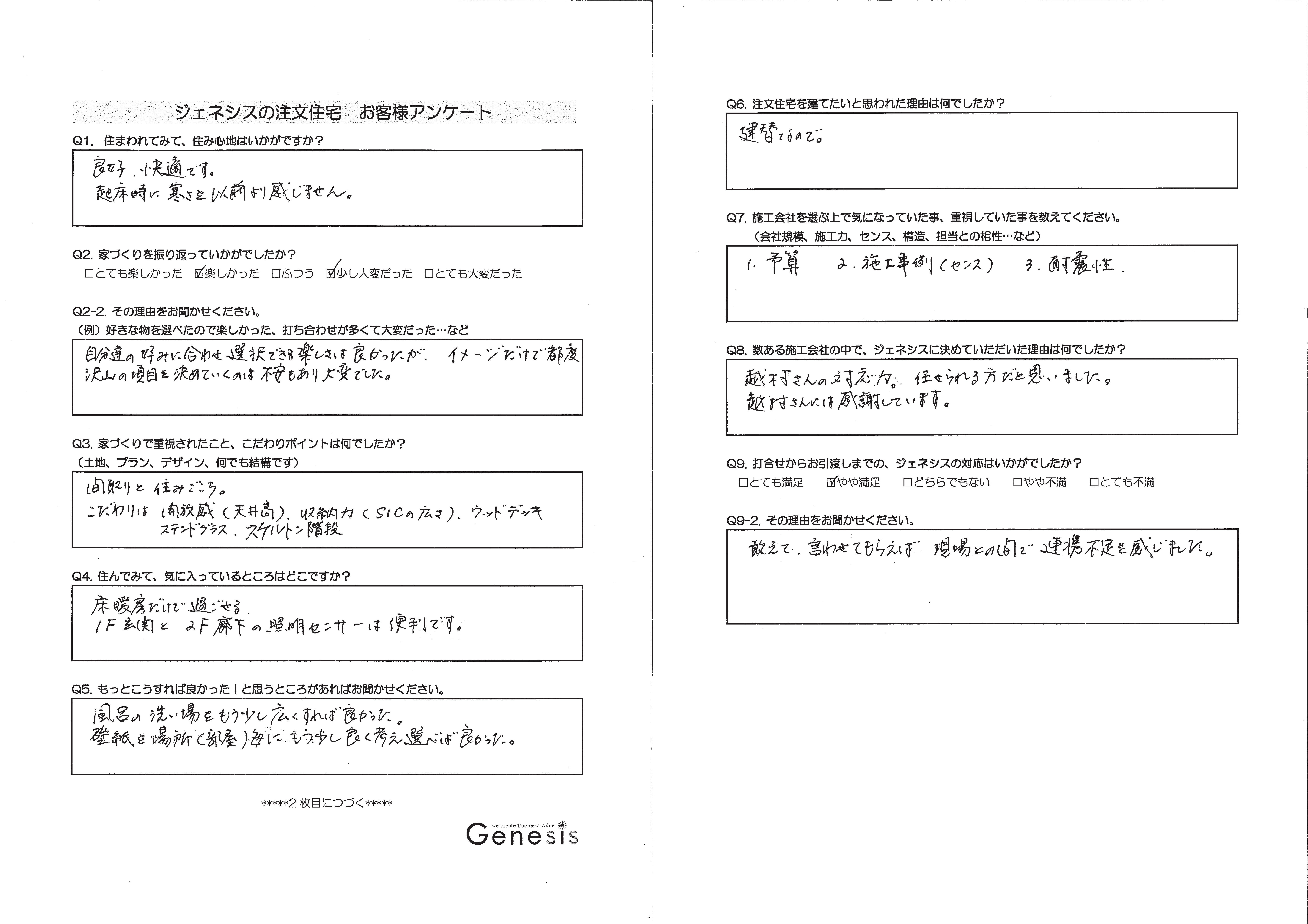 Q. 数ある施工会社の中で、ジェネシスに決めていただいた理由は何でしたか?