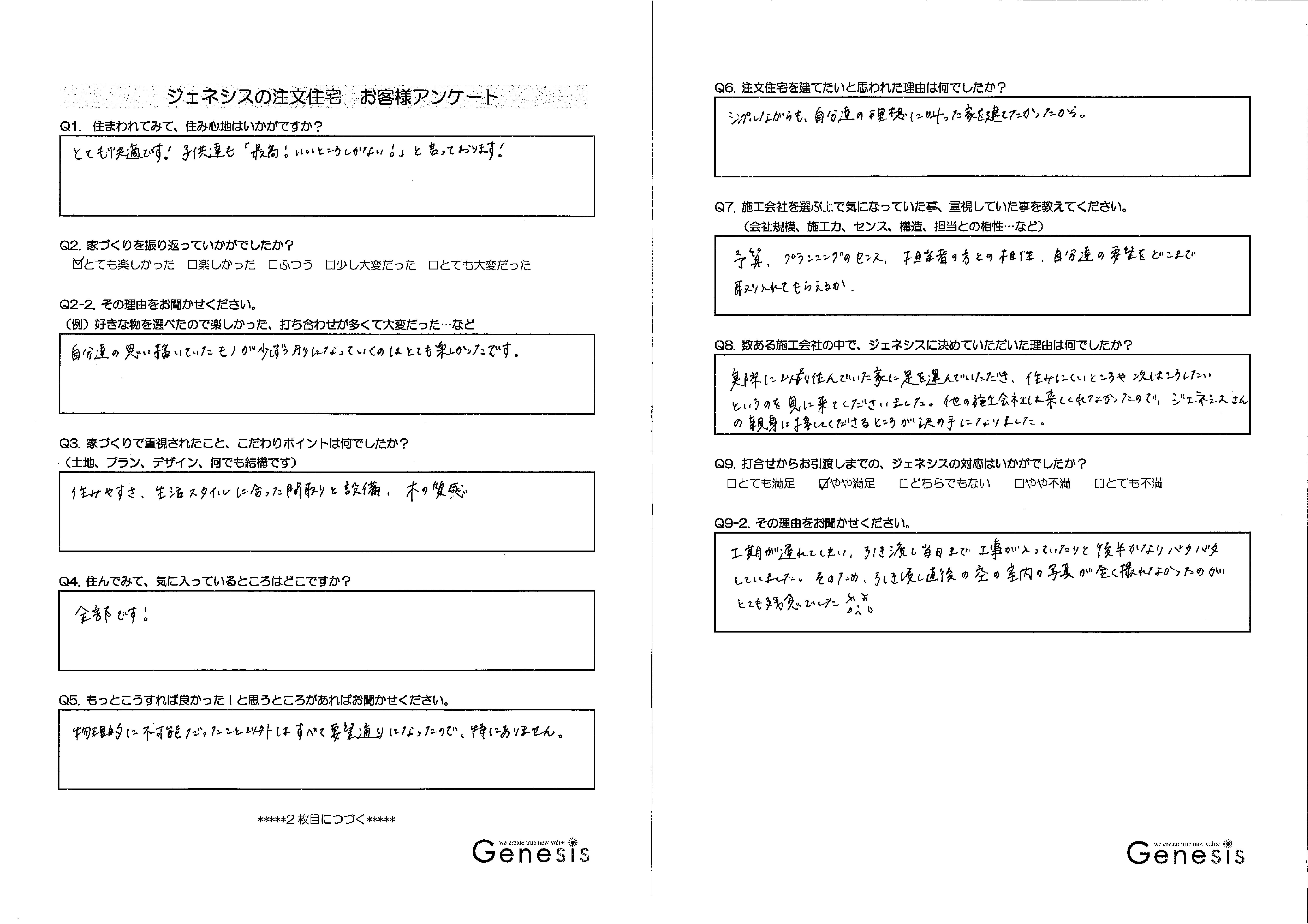 Q. 打合せからお引渡しまでの、ジェネシスの対応はいかがでしたか?