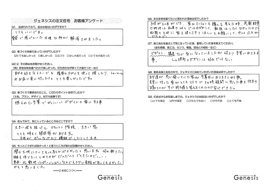 Q. 打合せからお引渡しまでの、ジェネシスの対応はいかがでしたか?
