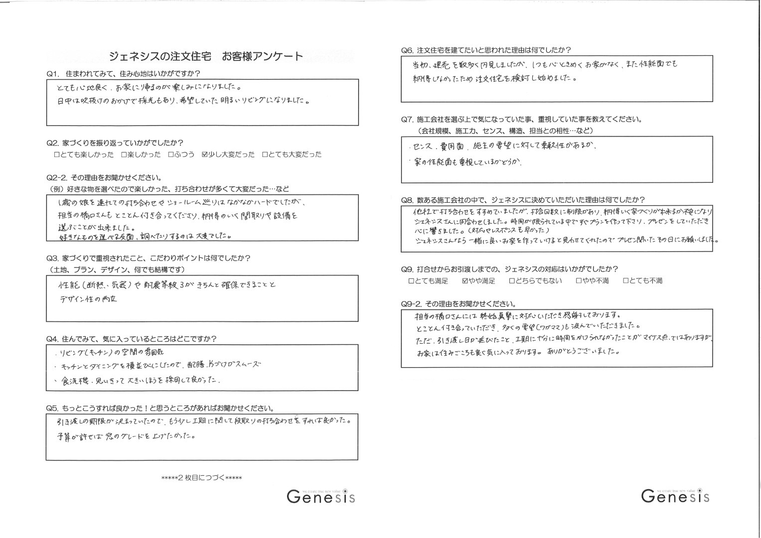 他社で打ち合わせをすすめていましたが、打合せ回数に制限があり、納得いく家づくりが出来るか不安になりジェネシスさんに問合せしました。