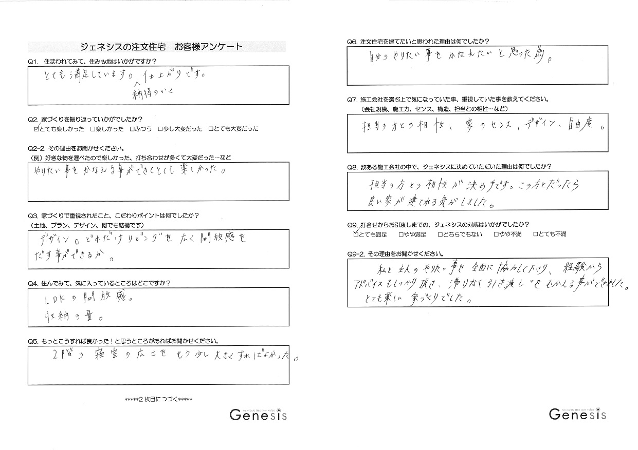 Q. 数ある施工会社の中で、ジェネシスに決めていただいた理由は何でしたか?