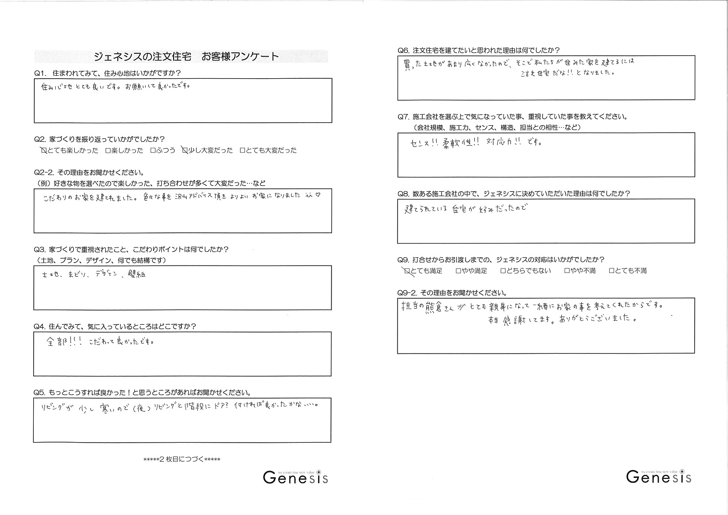 Q. 打合せからお引渡しまでの、ジェネシスの対応はいかがでしたか?