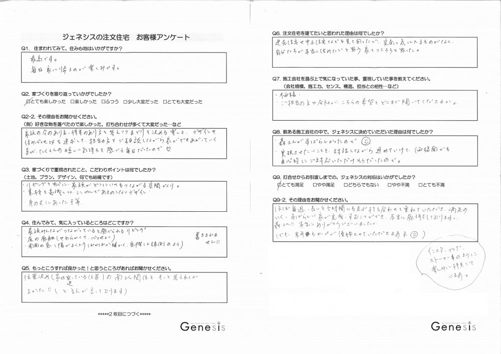 Q9. 打合せからお引渡しまでの、ジェネシスの対応はいかがでしたか?