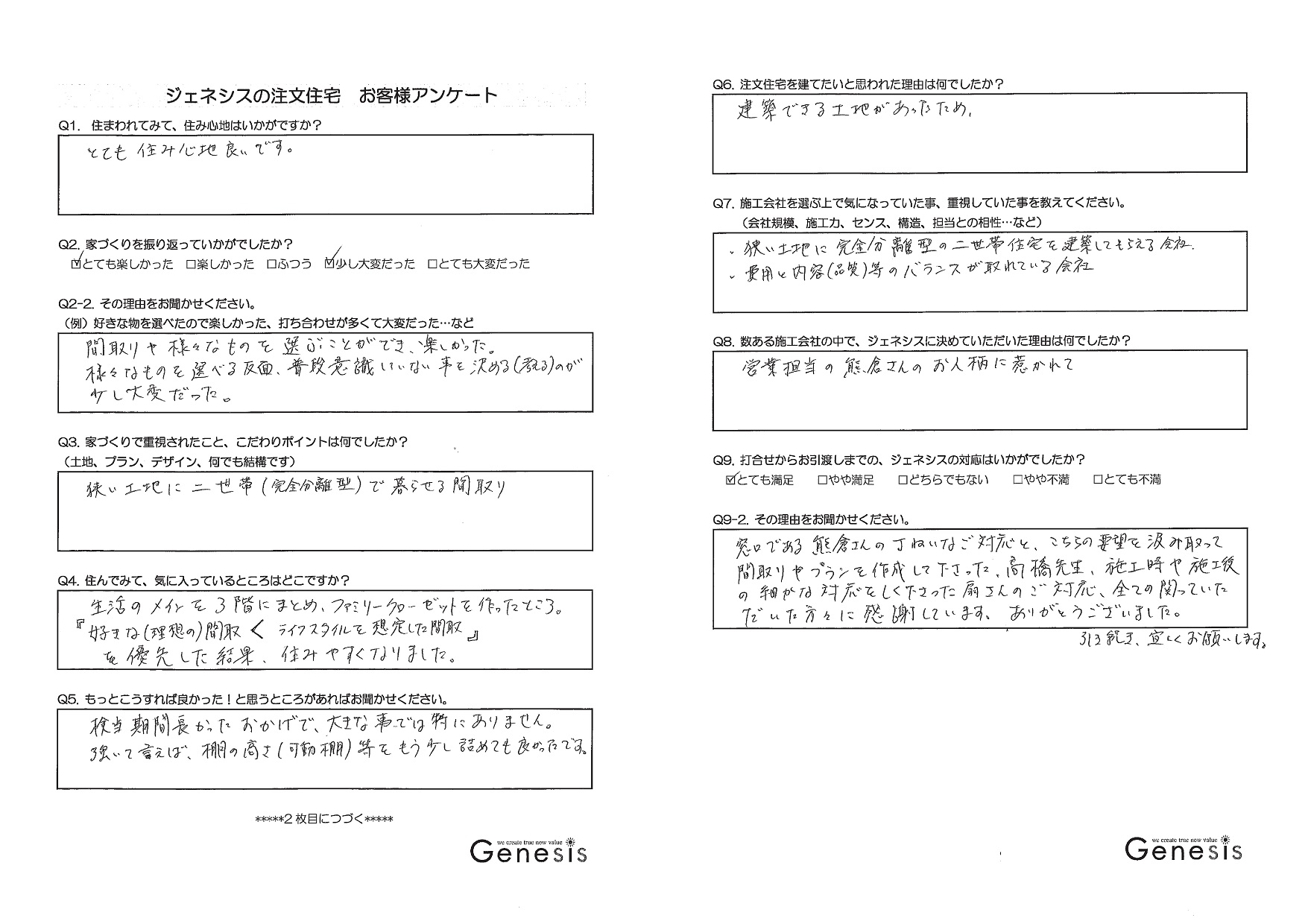 Q. 数ある施工会社の中で、ジェネシスに決めていただいた理由は何でしたか?