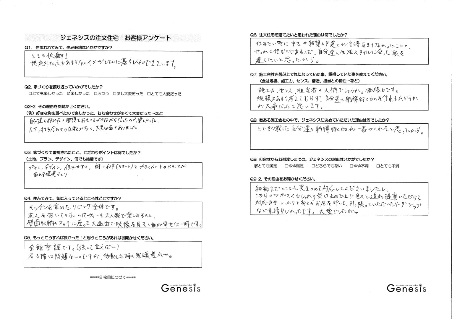 Q. 打合せからお引渡しまでの、ジェネシスの対応はいかがでしたか?
