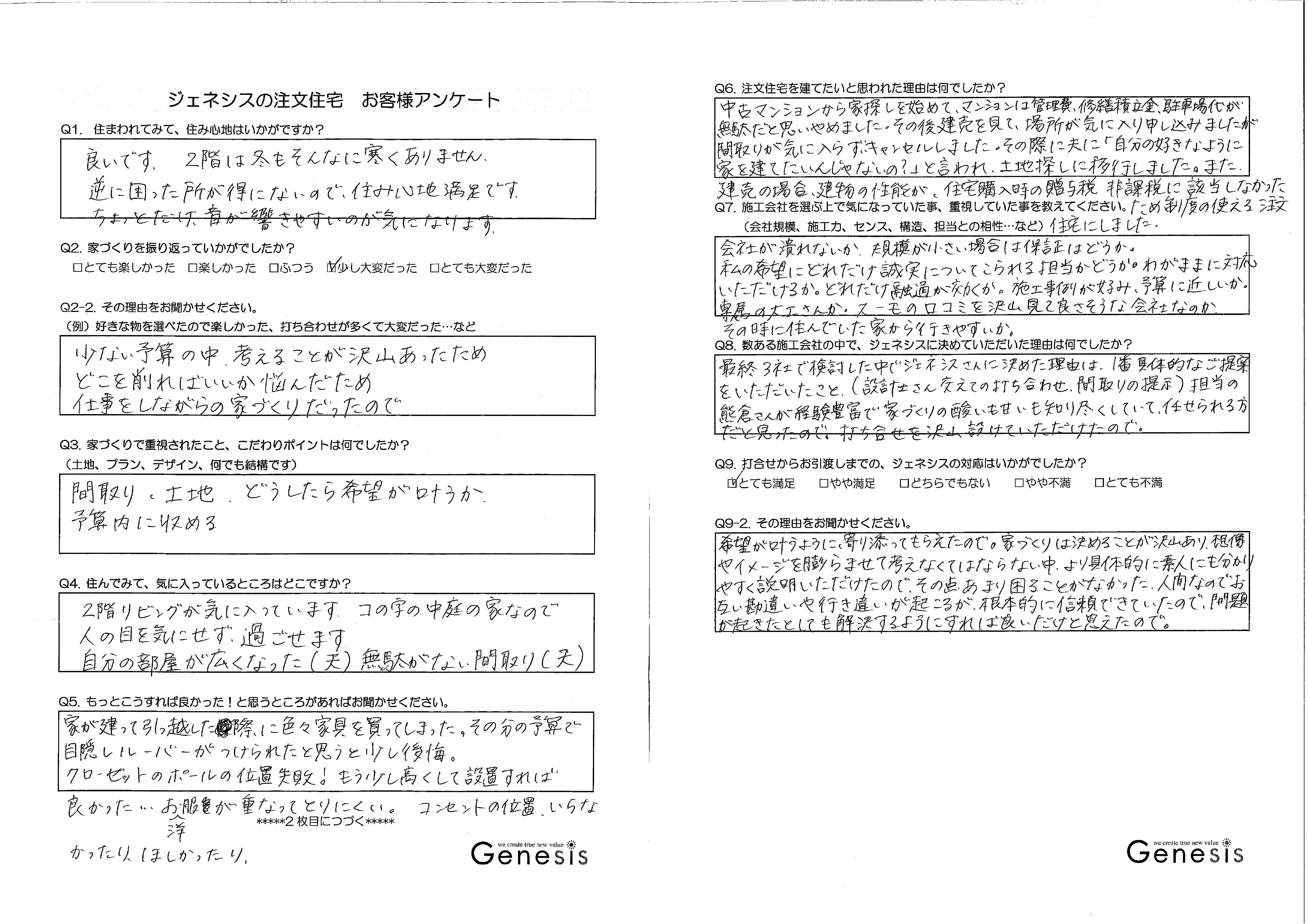 Q. 打合せからお引渡しまでの、ジェネシスの対応はいかがでしたか?