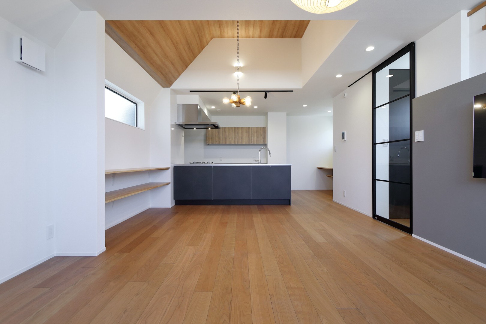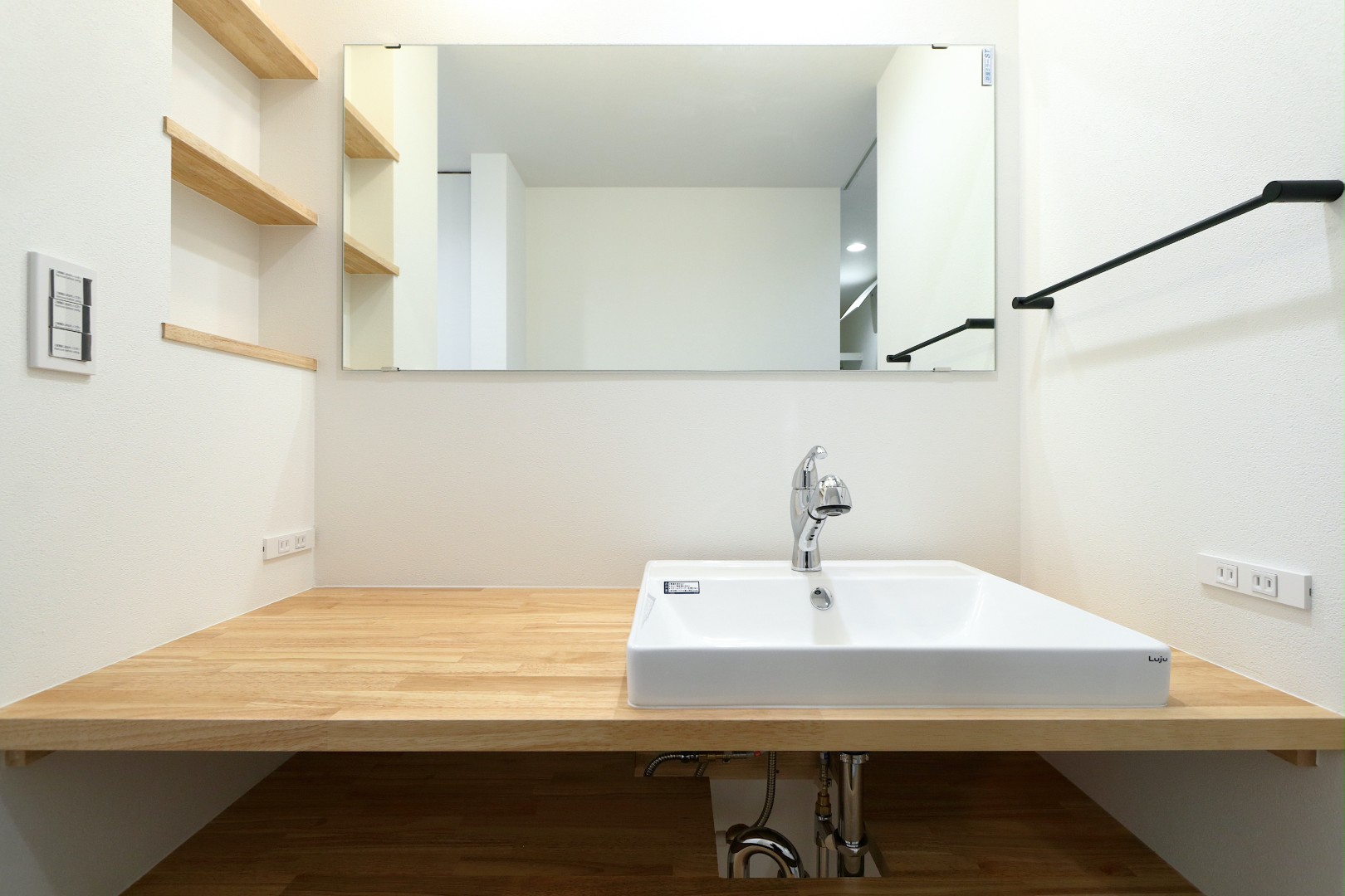 家事動線がよく生活がしやすい。造作の棚や洗面が気に入っている。