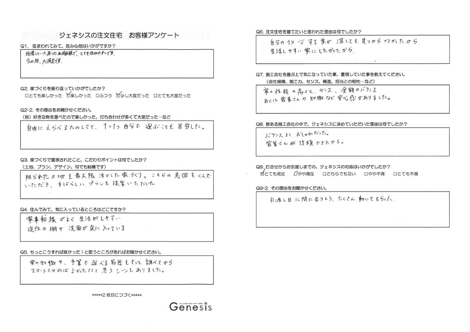 Q. 打合せからお引渡しまでの、ジェネシスの対応はいかがでしたか?