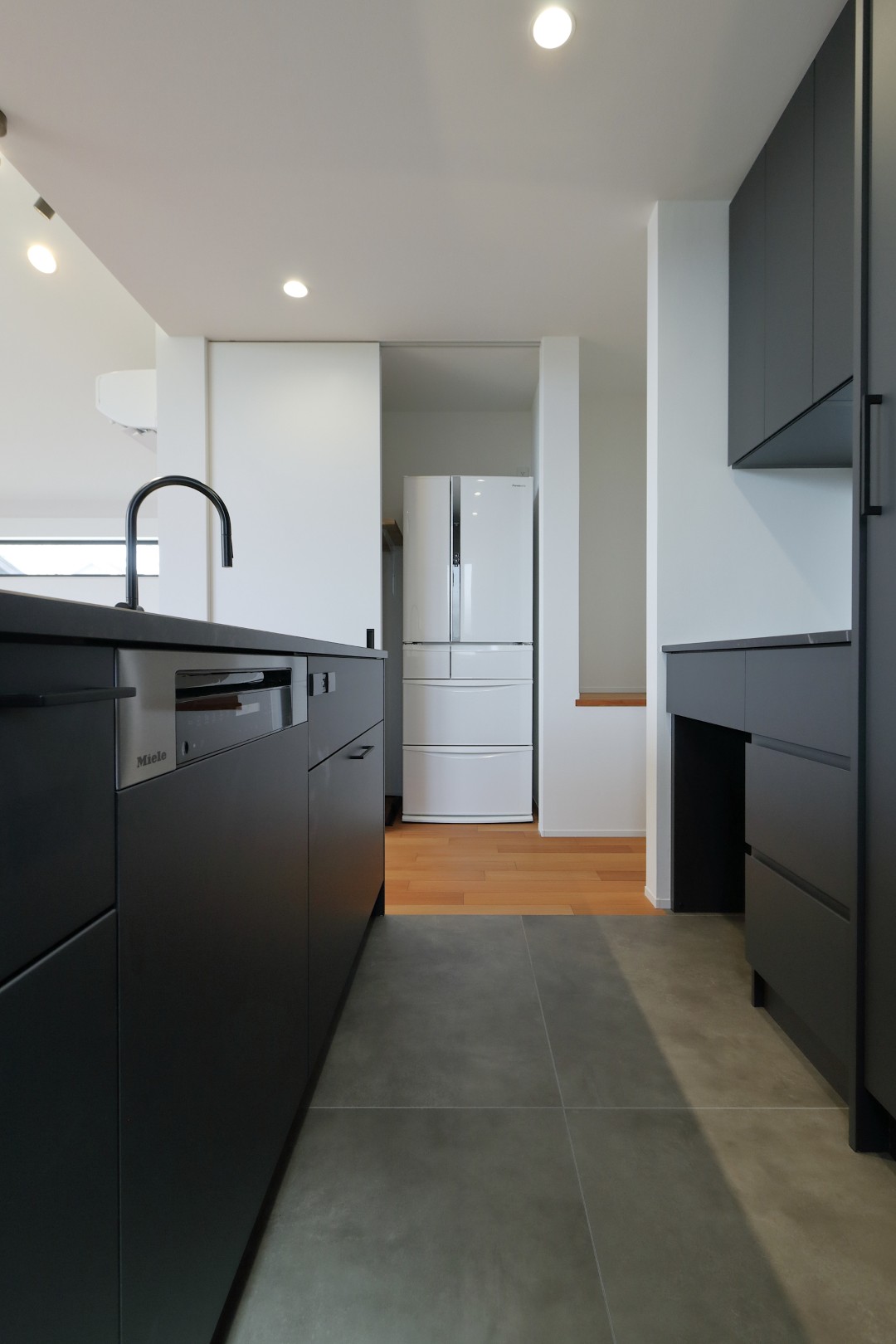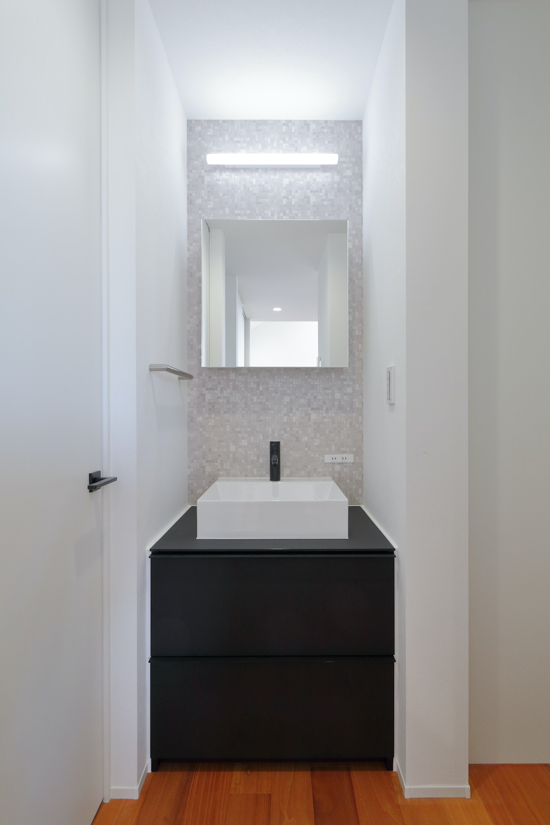 2階の洗面、キッチンのワークトップが熱い鍋を置いてもすぐ冷めること
