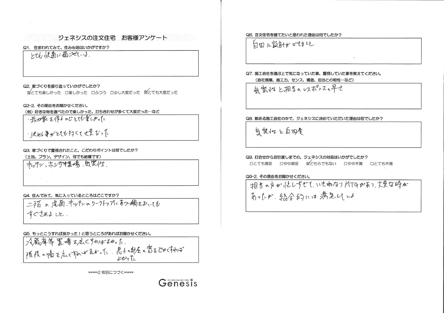 Q. 打合せからお引渡しまでの、ジェネシスの対応はいかがでしたか?