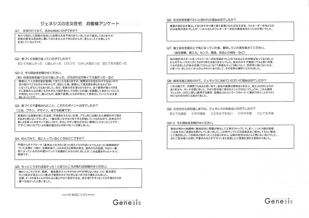 Q. 数ある施工会社の中で、ジェネシスに決めていただいた理由は何でしたか?